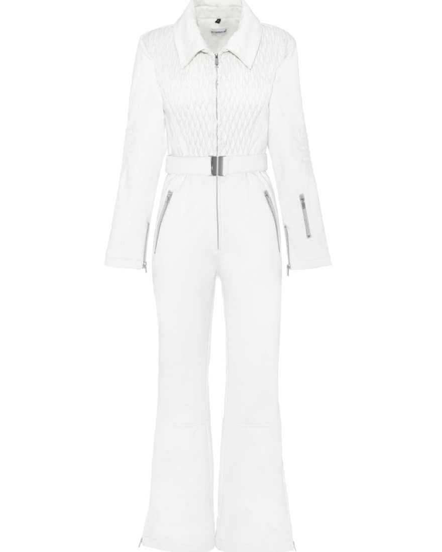 I am a size 4-6 and the medium fit perfectly with my base layers! The ski suit is so cute and comfortable! Our skiing was spring skiing (60°+) so I can’t speak on the warmth since I was warm the whole time!