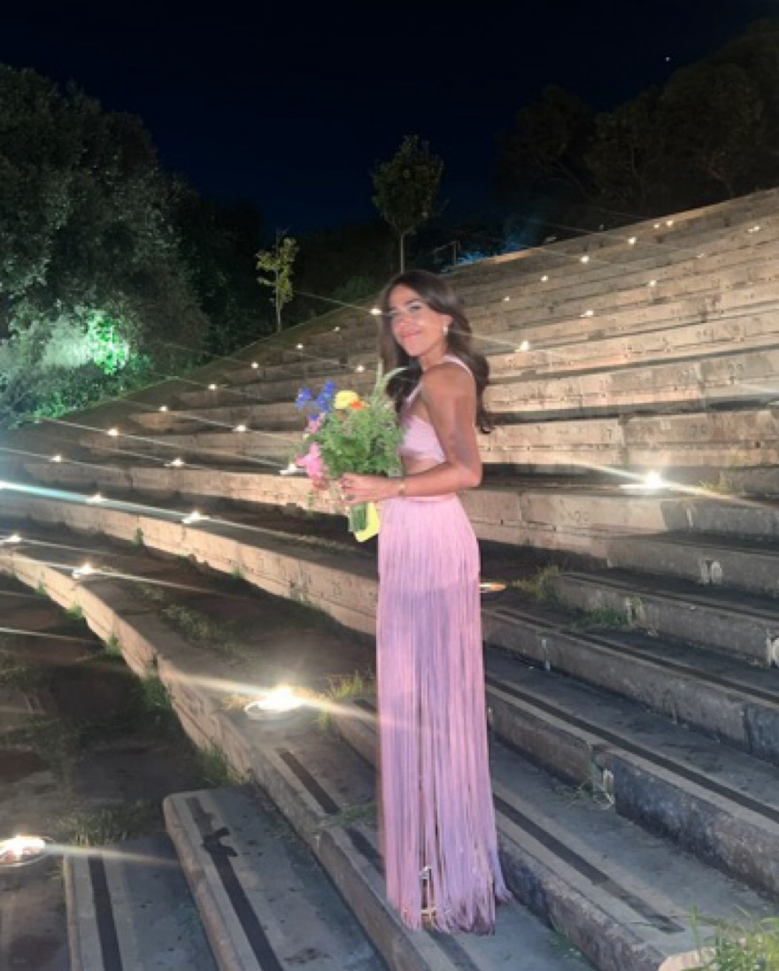 Antique Rose Fringe Cut Out Long Dress