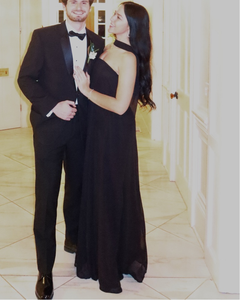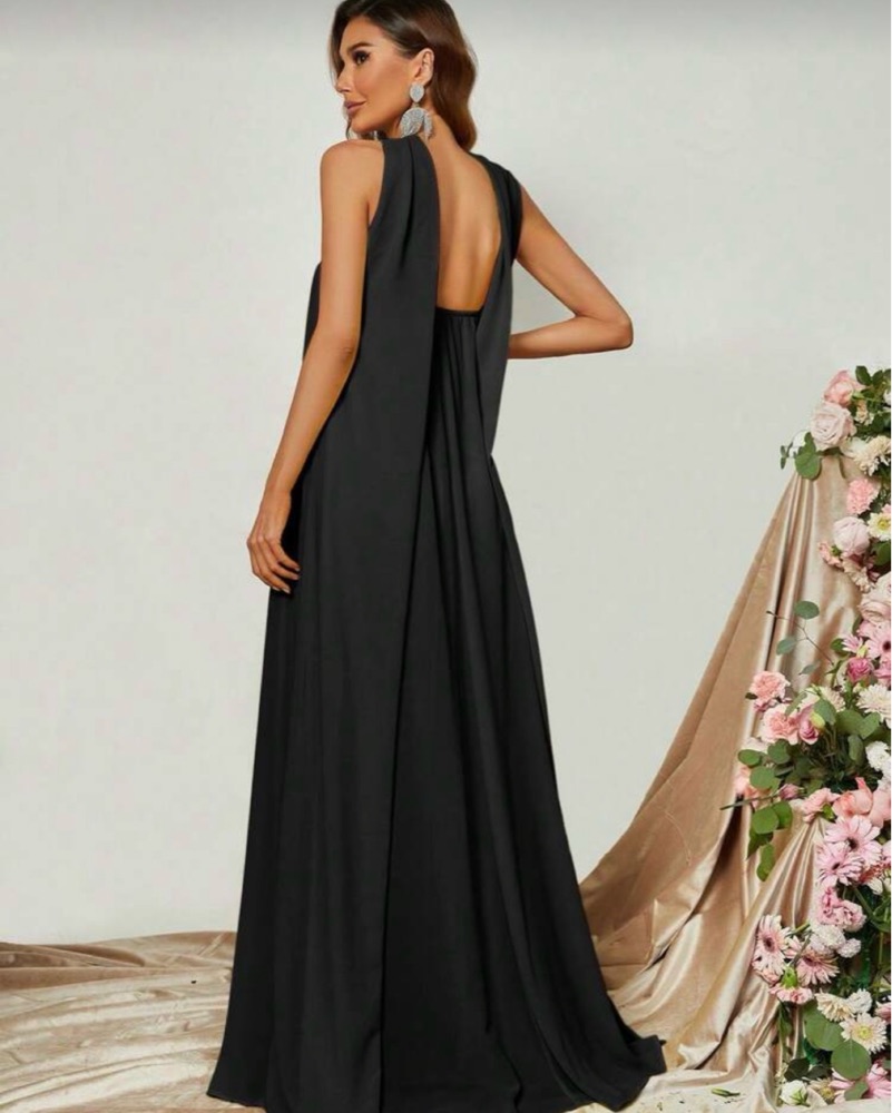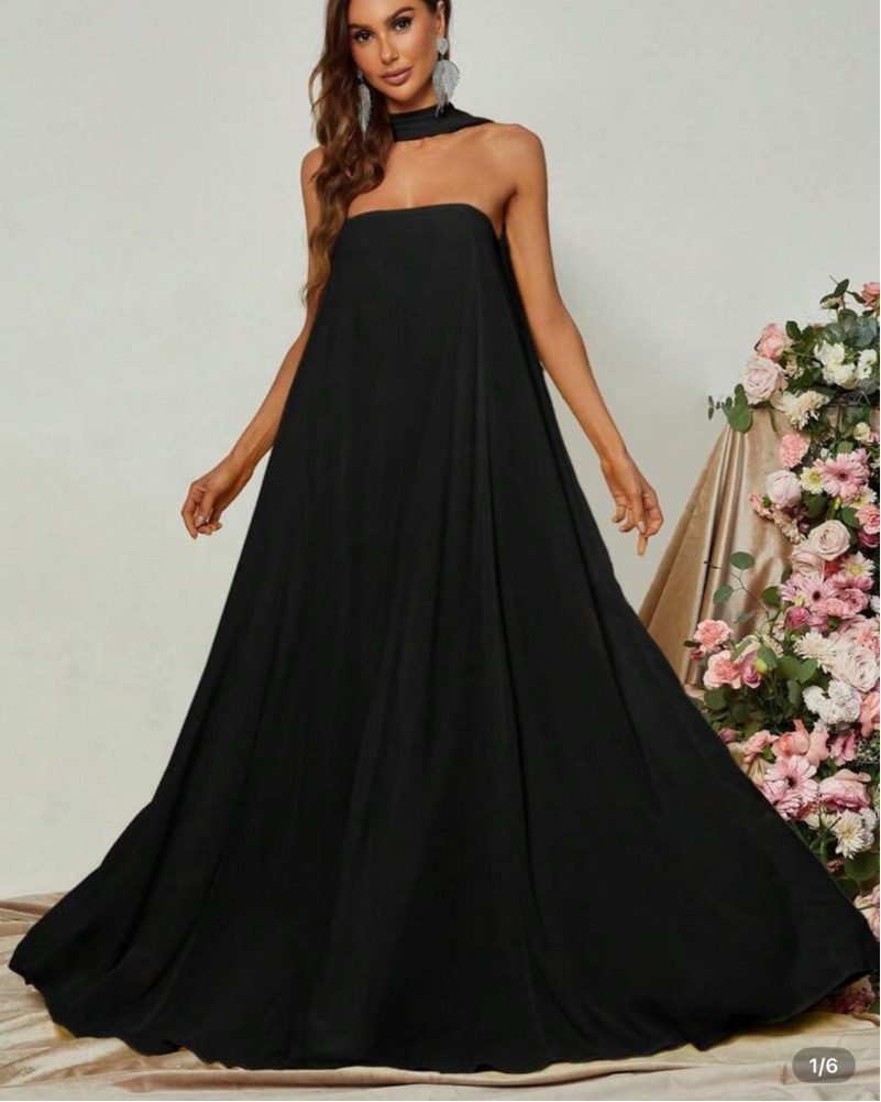 Perfect for a black tie event or wedding! The scarf is built into the dress! I’m 5’10 for reference!