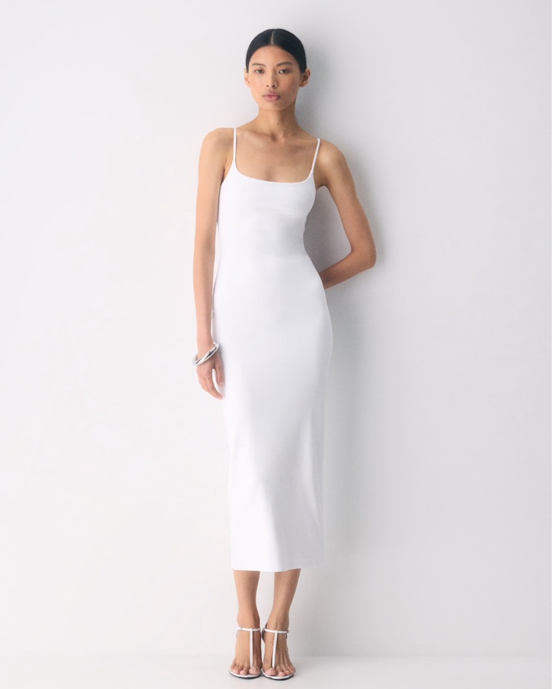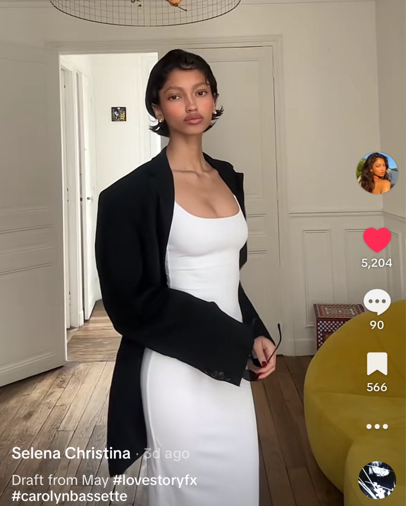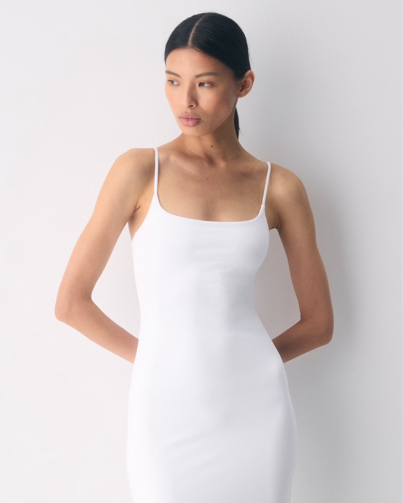 Carolyn Bassette inspo. This is the exact dress I am wearing in the video. It’s snug, form fitted, elevated. Perfect to style up or down. *Please be careful as it is a white dress, no self tanner please* 🤍