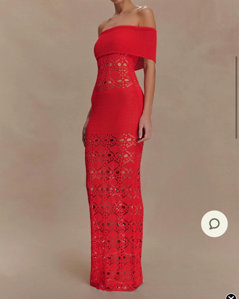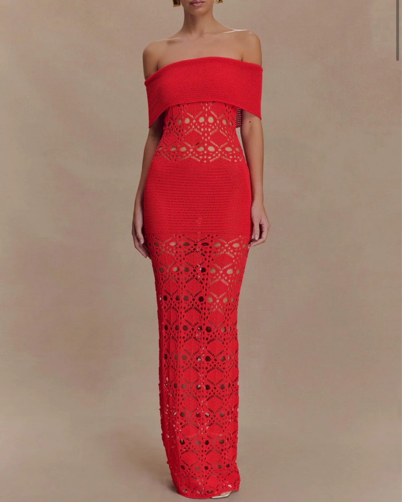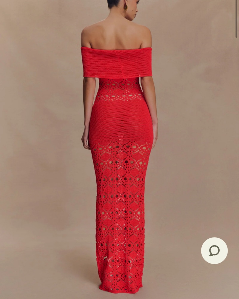 Off the shoulder crochet maxi dress - blood orange (more reddish) super flattering and comfortable perfect for tequila sunset theme