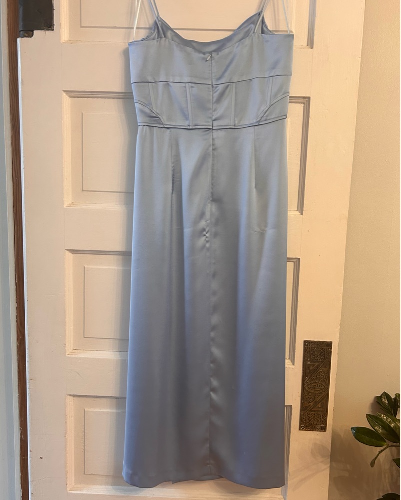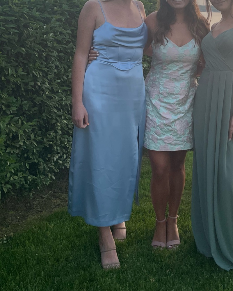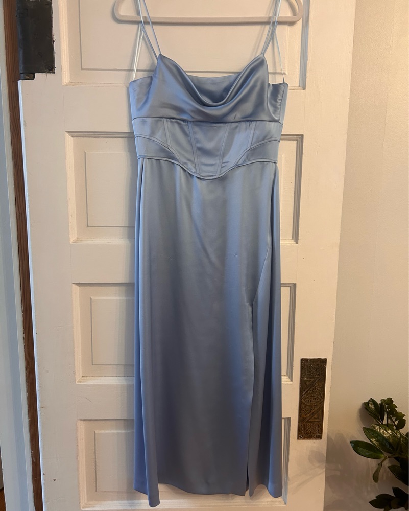This stylish ensemble is perfect for a formal event or special occasion. The satin midi dress offers a luxurious and sophisticated look, while also being affordable!