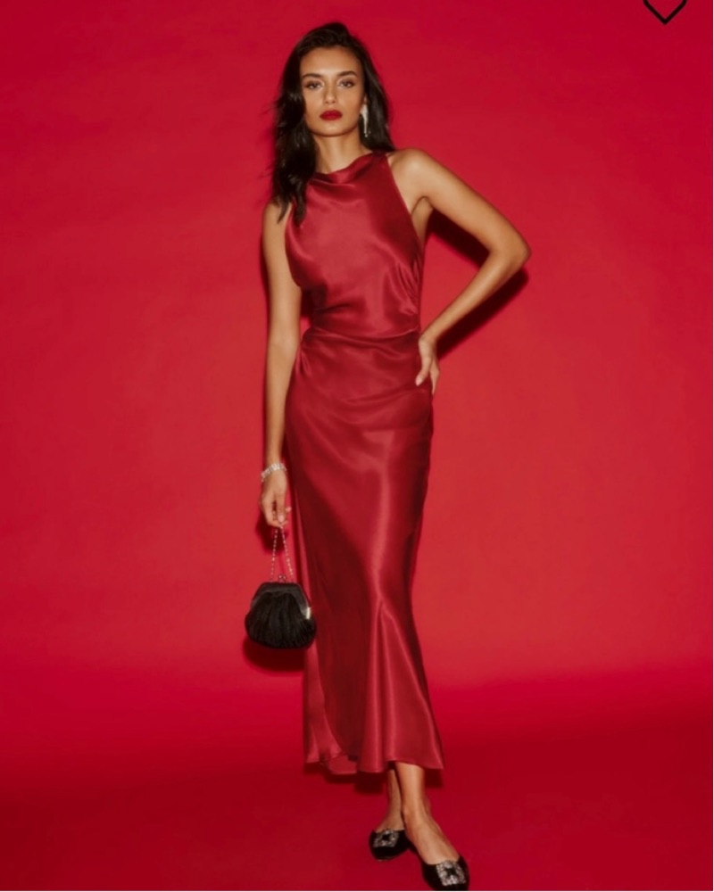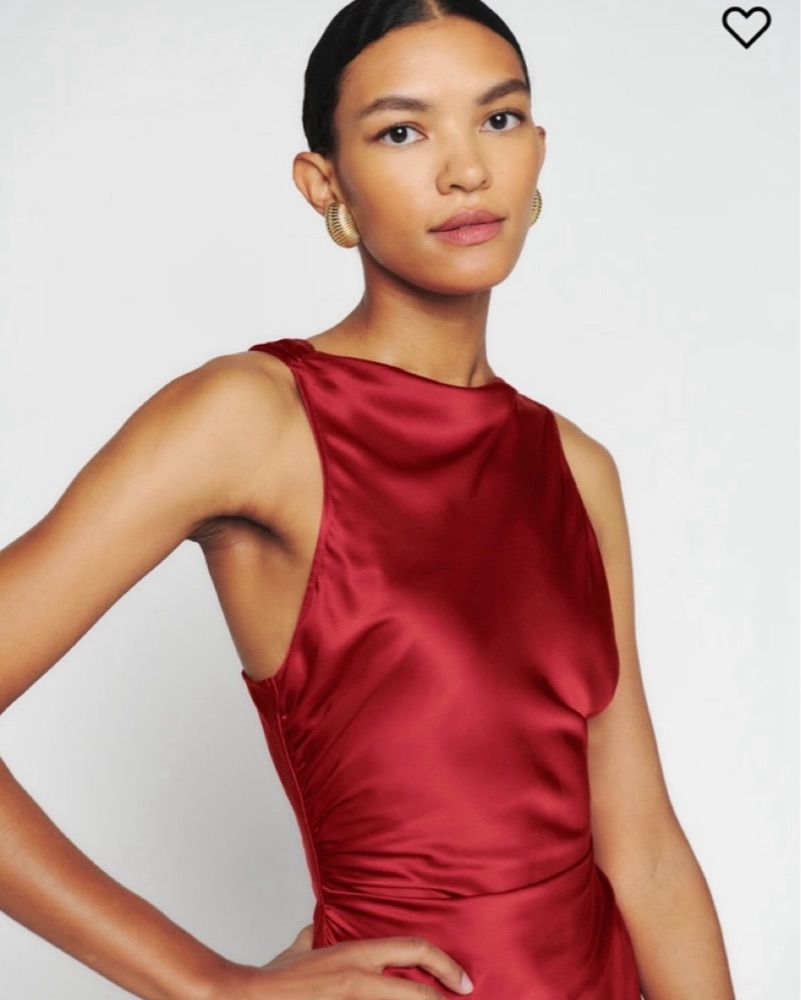 This stunning satin red maxi dress is perfect for a formal event or special occasion. The sleek silhouette and open back design create a chic and sophisticated look. Perfect condition! Size 8 but Fits sizes 4-8, cowel neck and open back