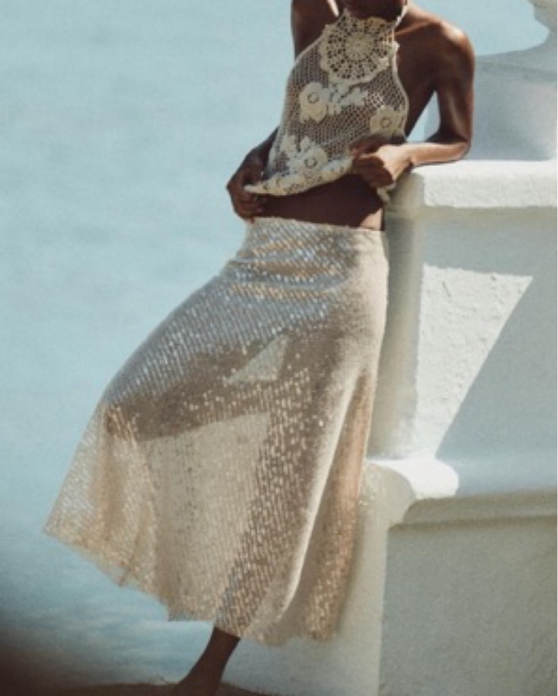 Zara Sheer Crochet Sequin Skirt by Zara - Pickle