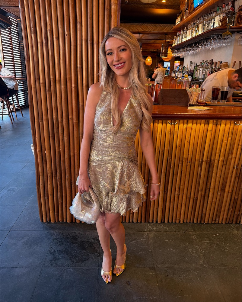 PatBo Gold Dust Lurex Plunge Mini Dress by PatBo - Pickle