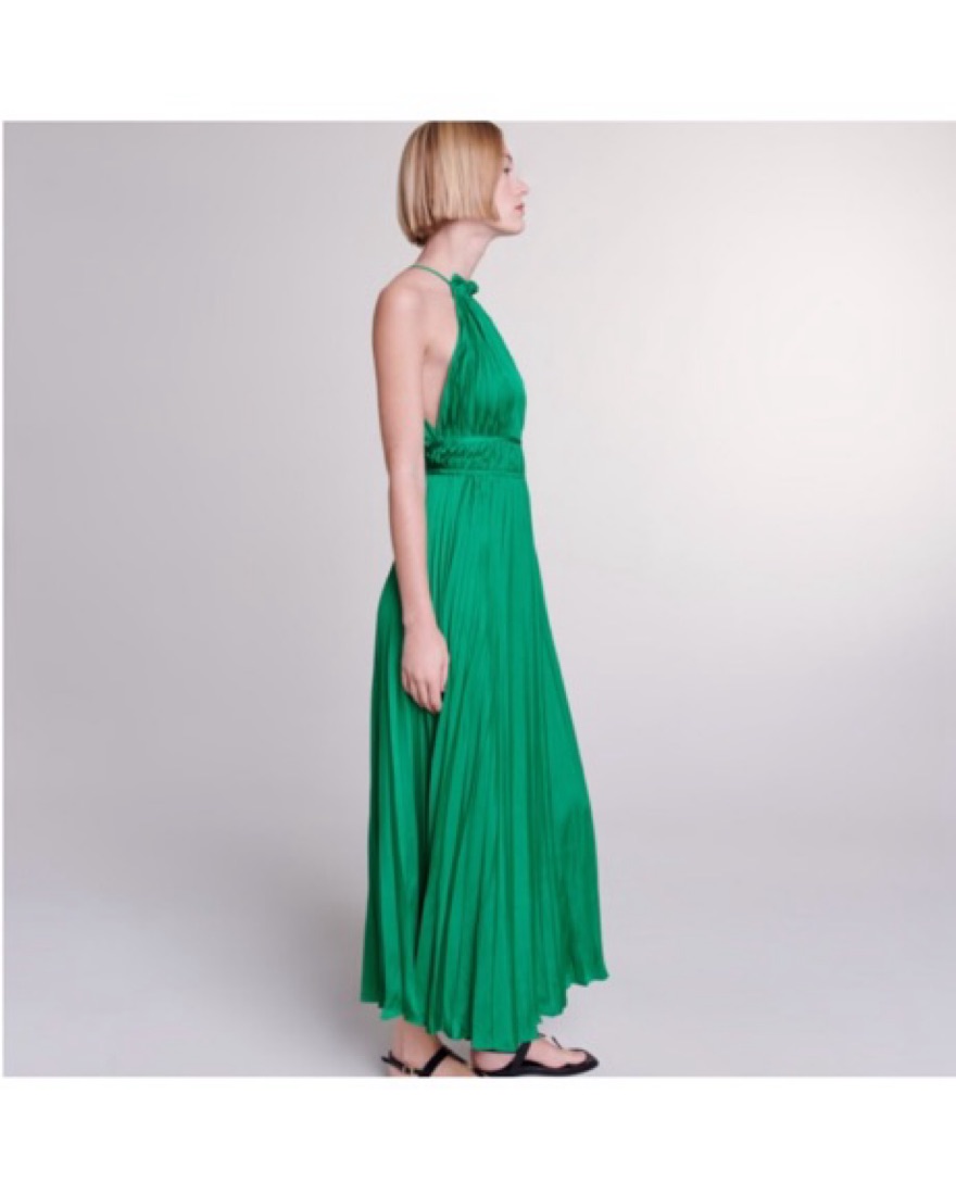 NWT Maje Reilly Green Pleated satin maxi