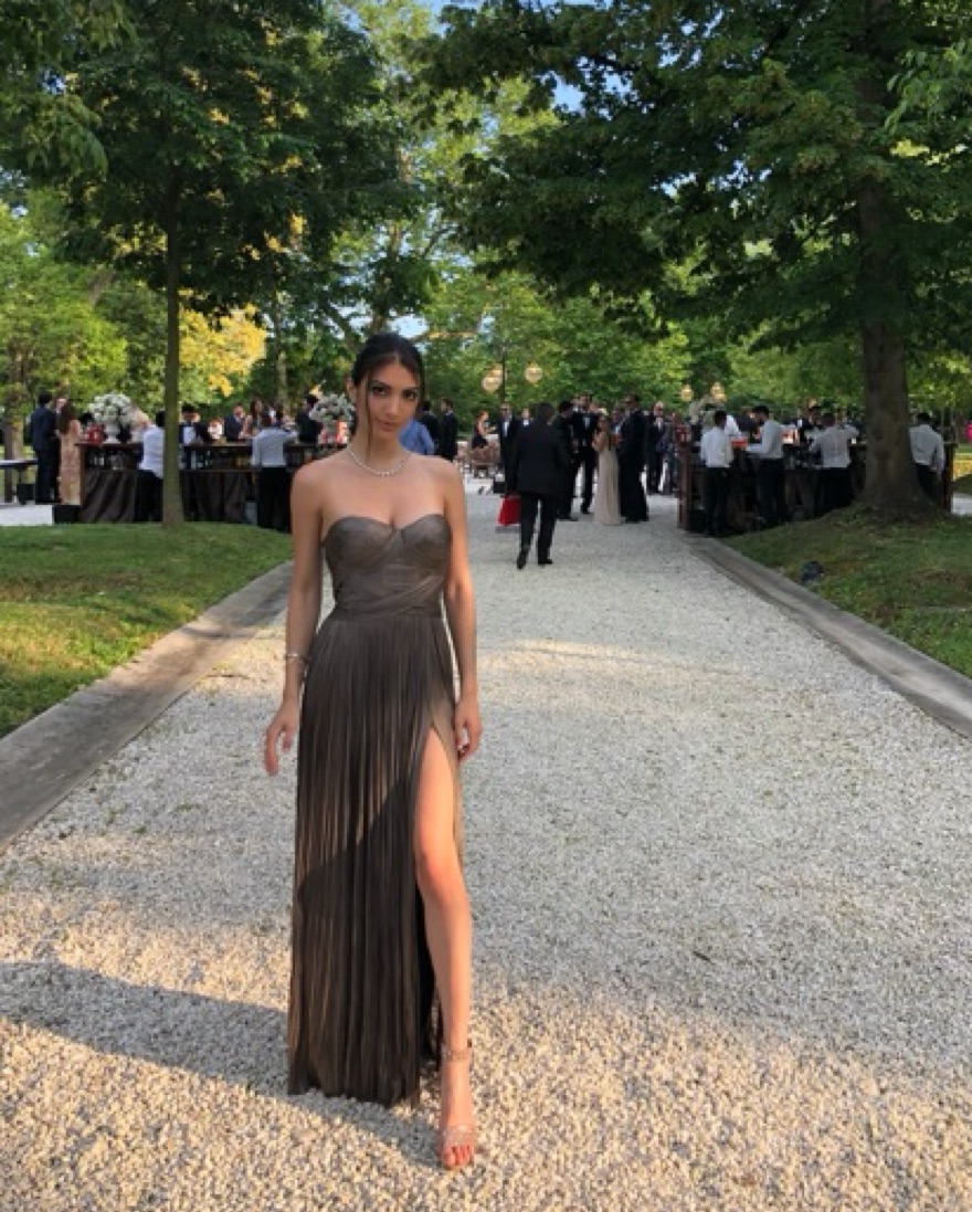 Beauriful metallic corset gown flowy with w slit
