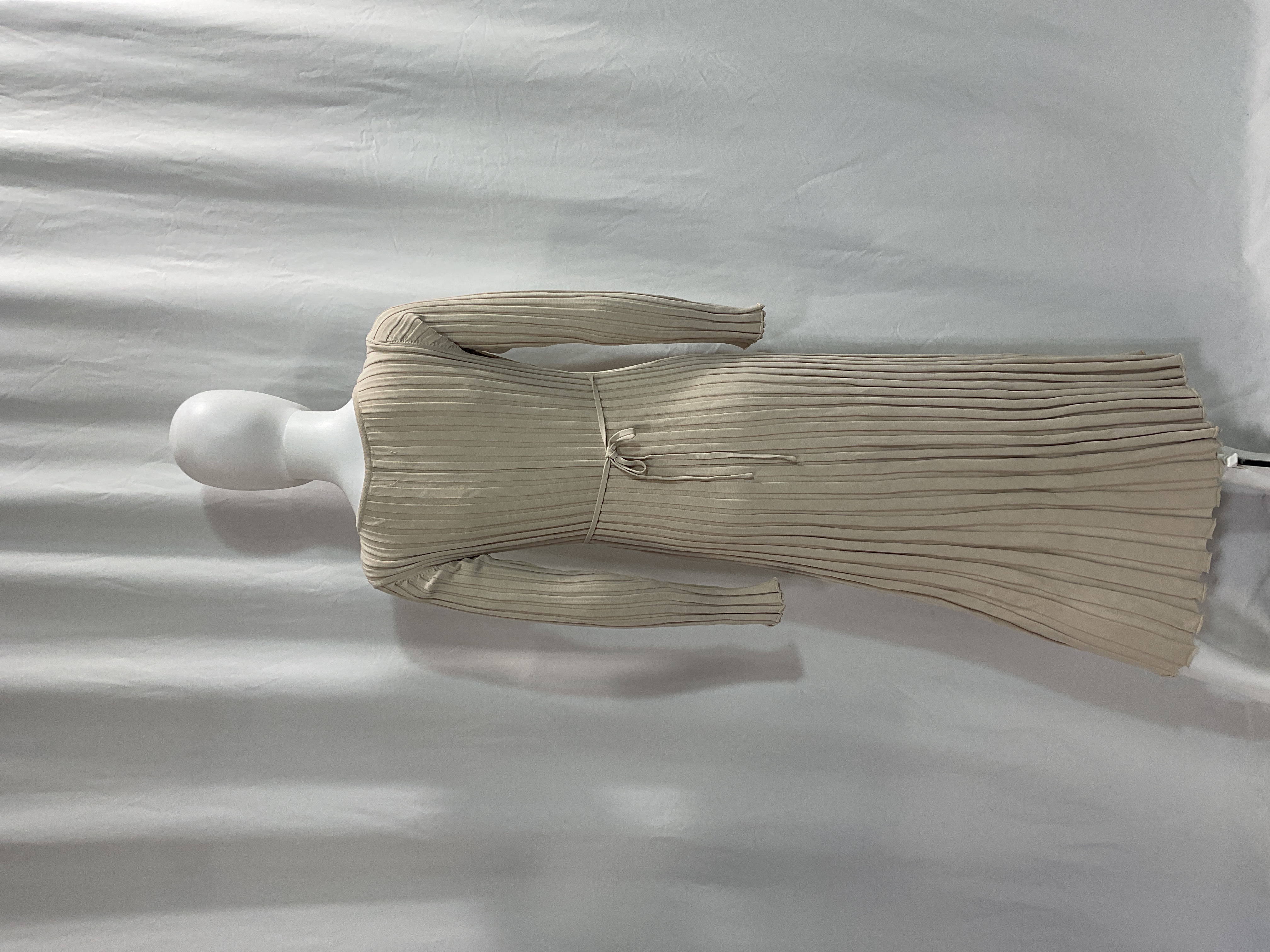 Effortlessly elegant in a neutral stone hue. The midi length and knit fabric make it perfect for work or weekend plans.