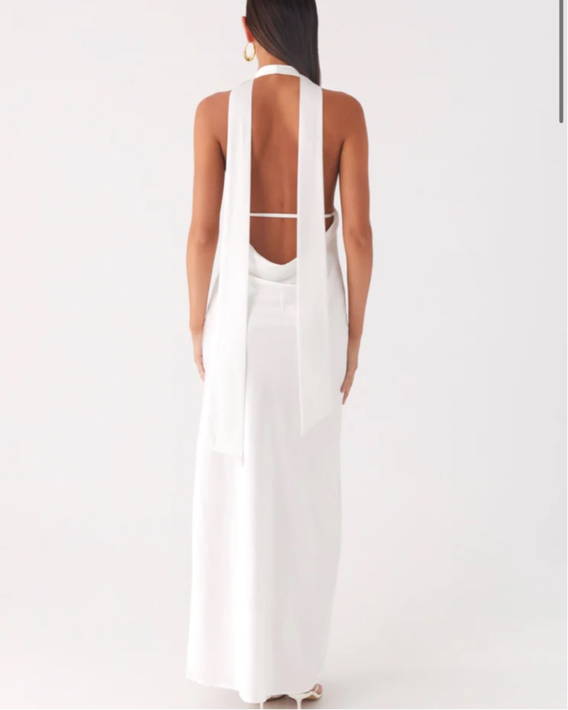 White Satin Halter Maxi Dress