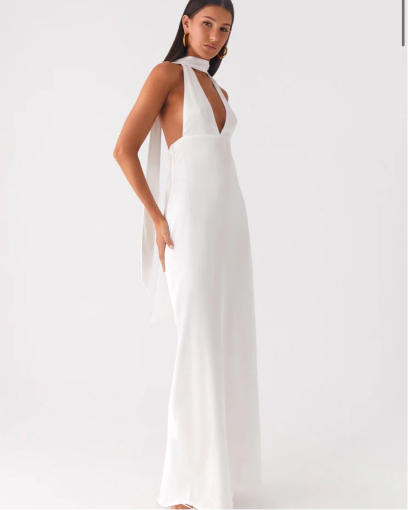 White Satin Halter Maxi Dress by Peppermayo - Pickle