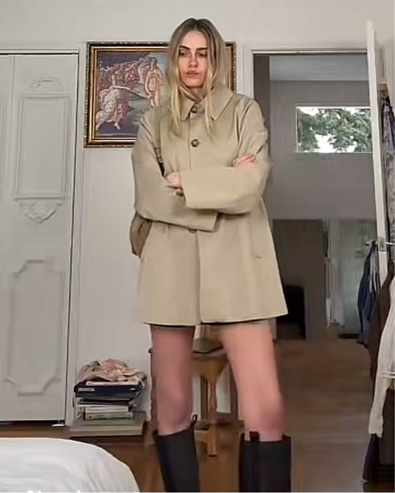 Size 2. Super cute trench. I love to wear it with a mini skirt or dress