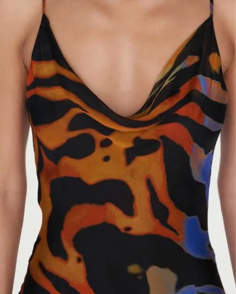 Fabienne is the ultimate wardrobe hero. Crafted from a lightweight 100% silk chiffon, this technicolour, psychedelic dream of a dress perfectly captures the spirit of adventure. Rarely worn in pristine condition.