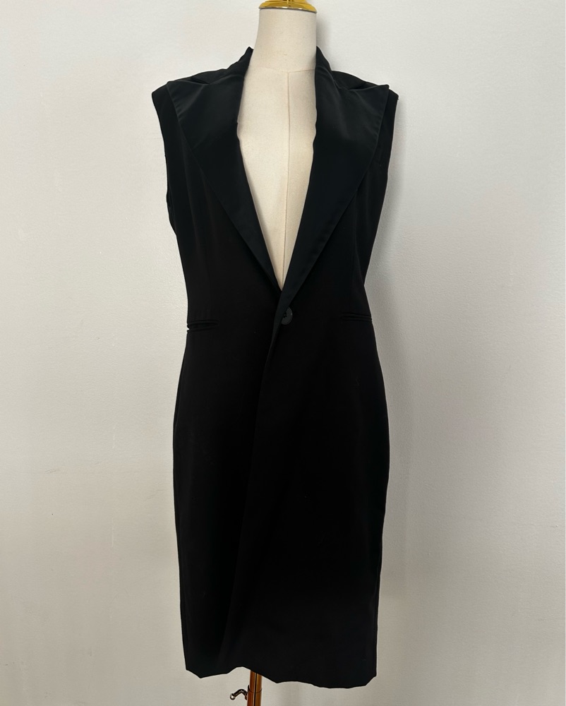 RALPH LAUREN PURPLE LABEL COAT DRESS IN BLACK. Works on Size S as a coat, works on size M-L as a tight dress!