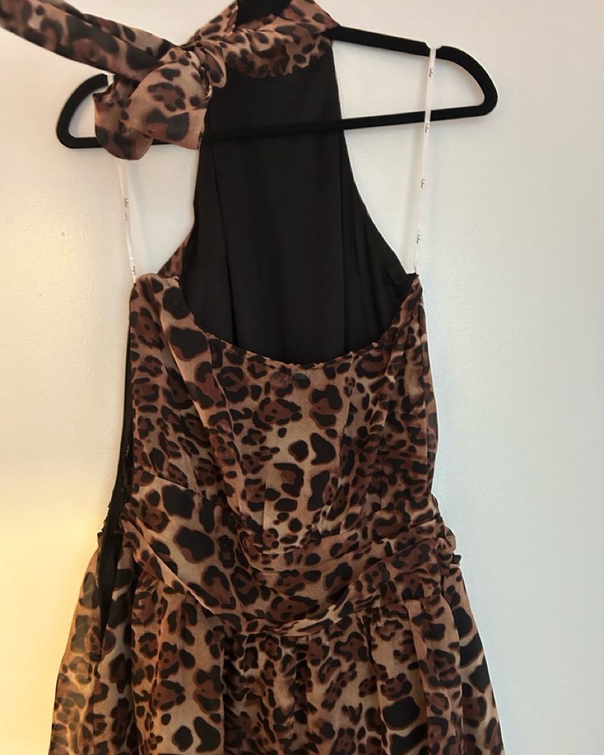 So cute - I wore this for my birthday and loved it. It’s a halter with a zipper on the side and is a bit fitted on the waist/hips - you can play with it to fit either way.