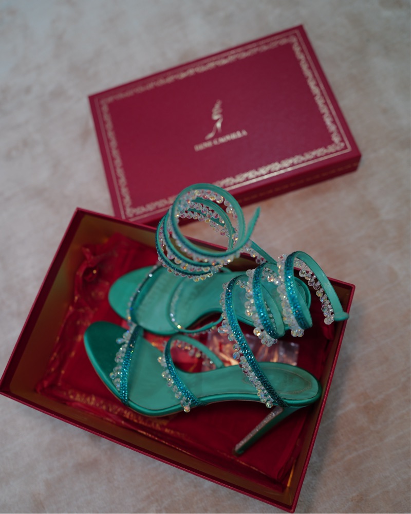 Rene Caovilla Chandelier Heels in Aquamarine. Fits size 8/9. Euro size 40