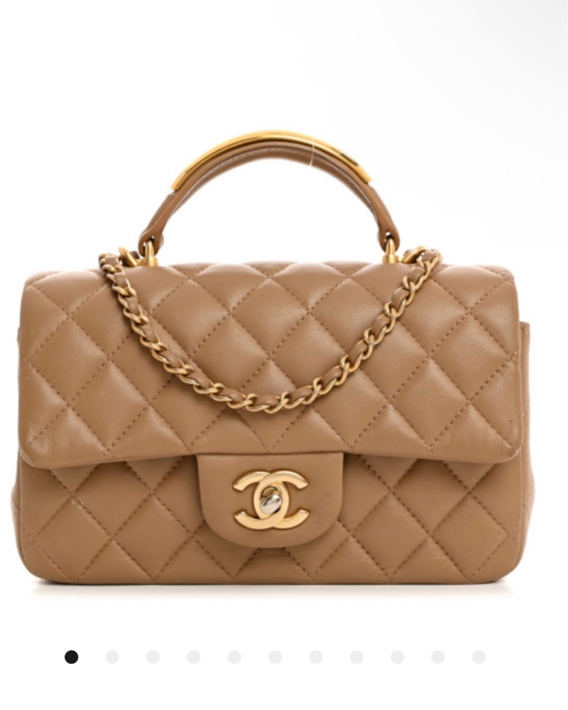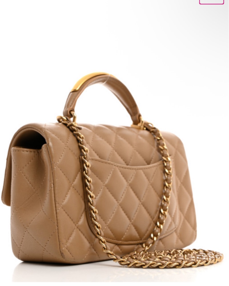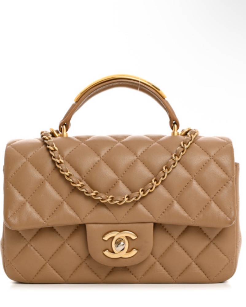 Authentic CHANEL Lambskin Quilted Mini Metal Top Handle Rectangular Flap Beige