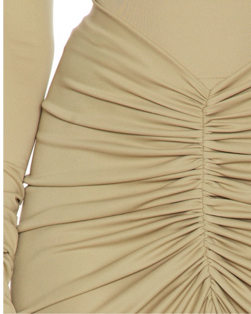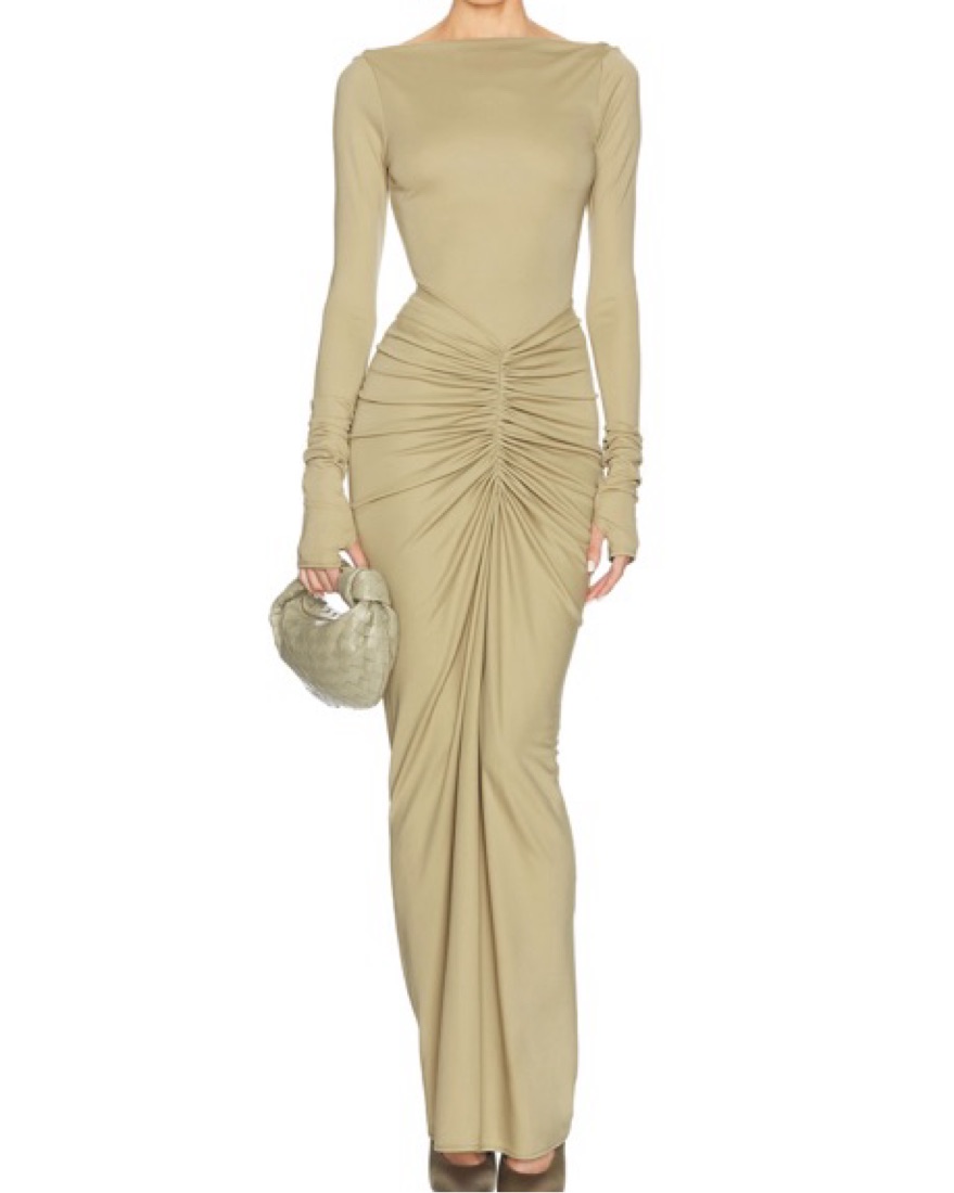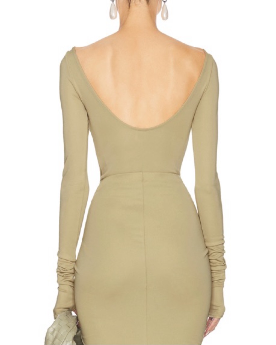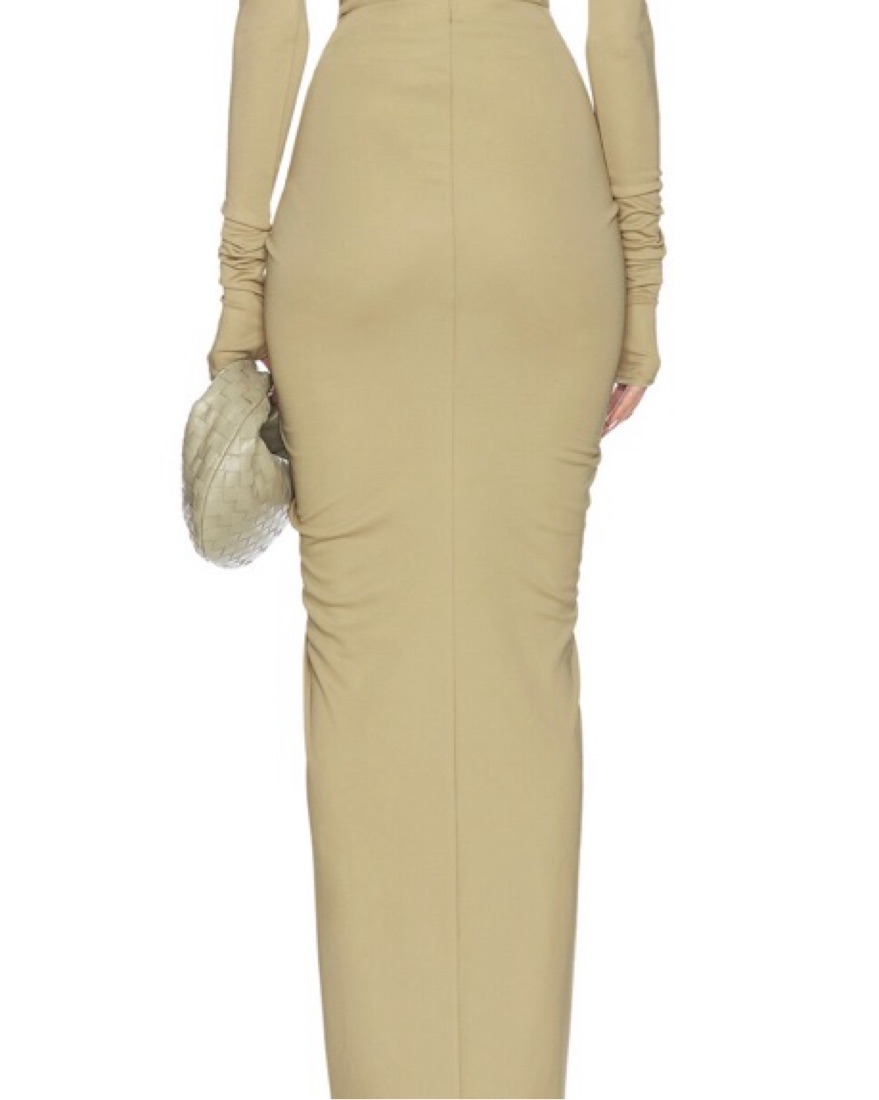 Size small TTS. Sold out online. Has stretch and is so flattering and comfortable! Freshly drycleaned and perfect for an event. For size reference, I’m 5’5” and can wear this with either kitten heels or high heels. You can wear the skirt as high or low as you want to suit your shoe choice.