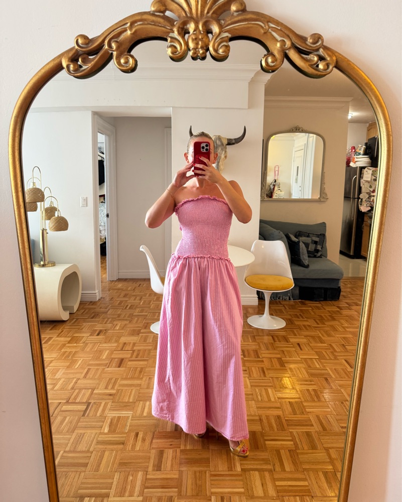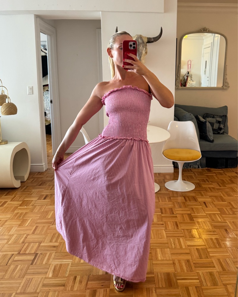 Strapless Maxi Dress in Pink Stripe by More to Come - Pickle
