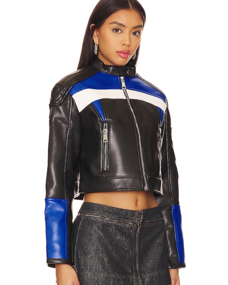 Nueve Biker Jacket In Black And Blue by Lioness - Pickle