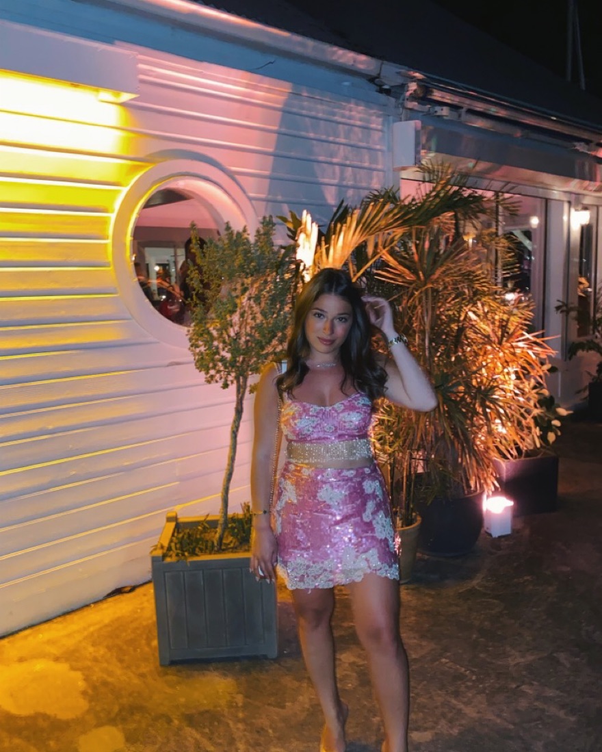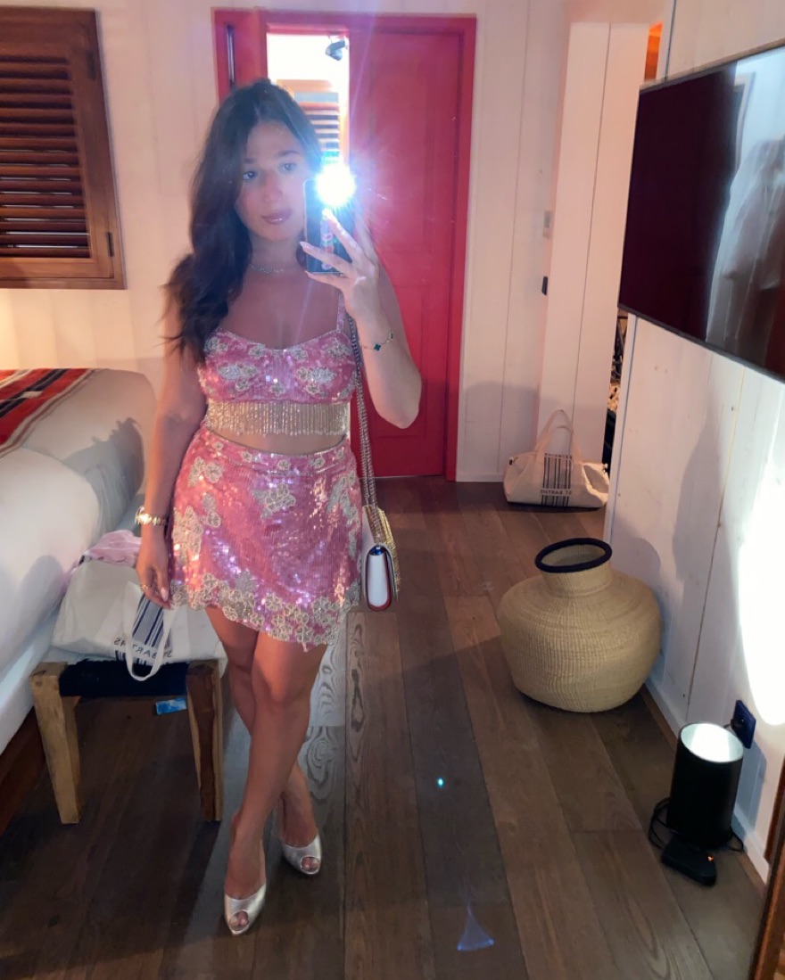 2 Piece Pink Sequin & Fringe Skirt Set