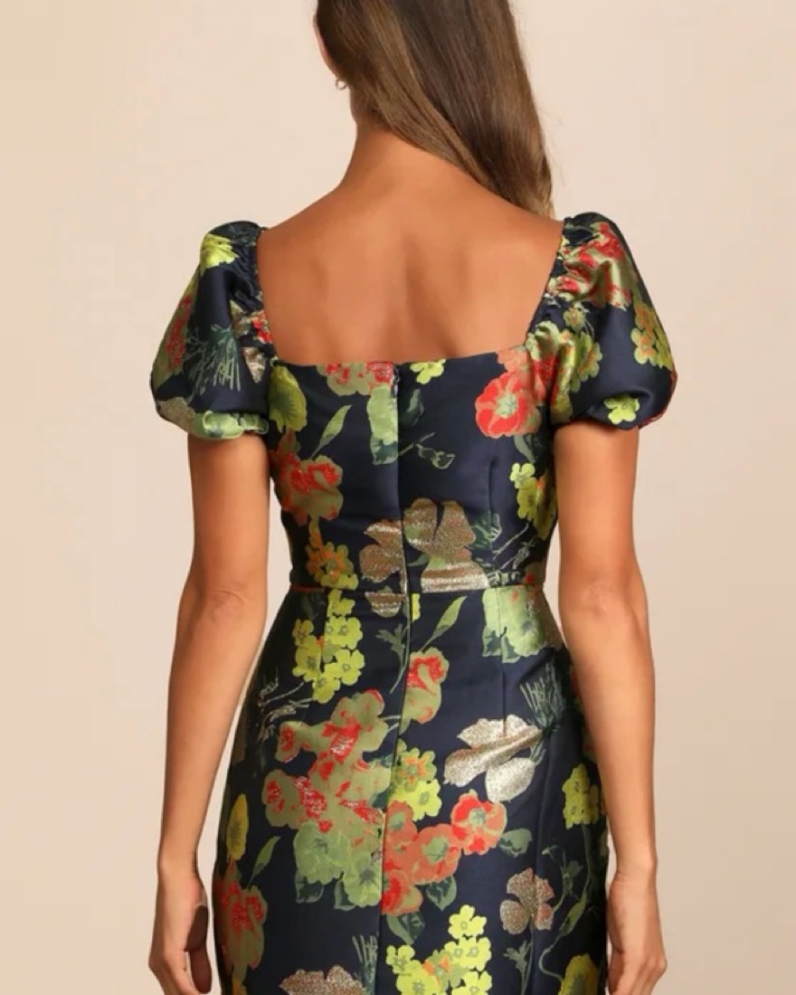 Navy Blue Jacquard Puff Sleeve Mini Dres by Lulus - Pickle