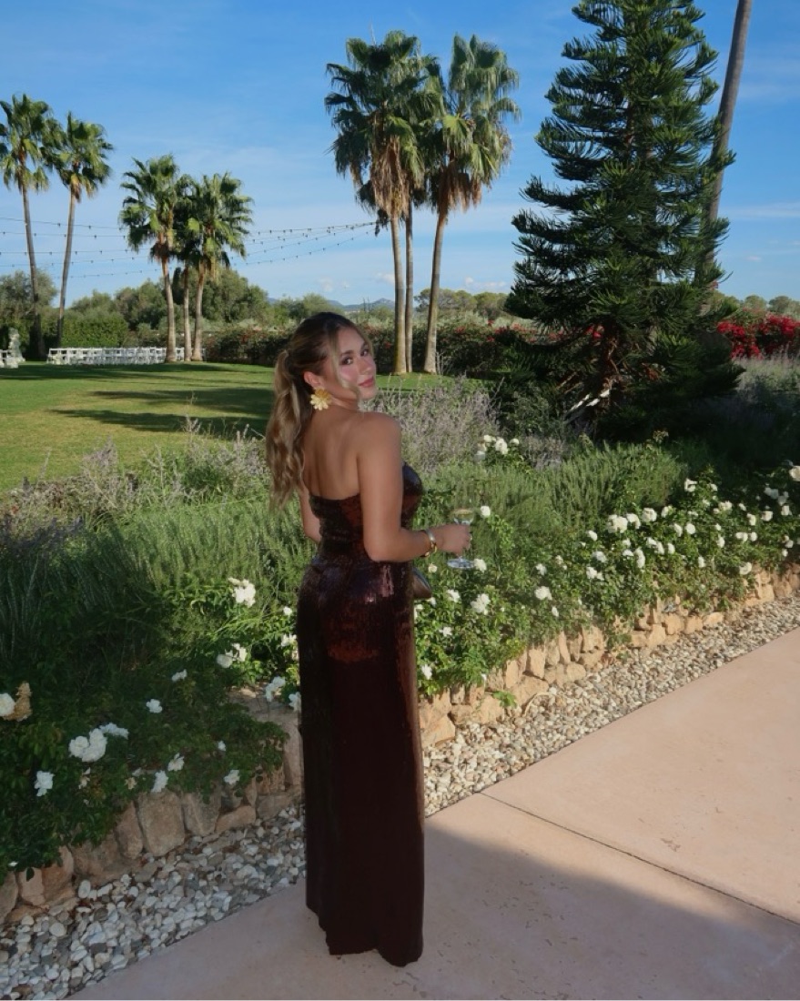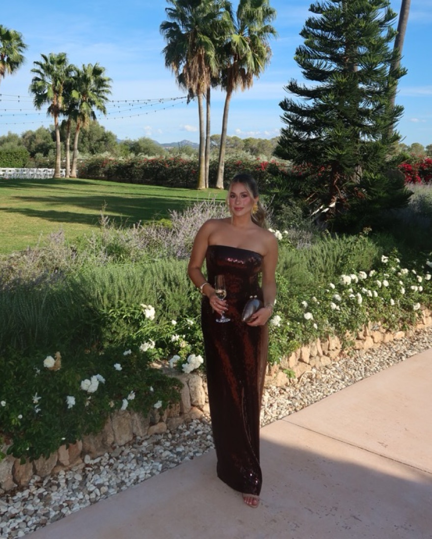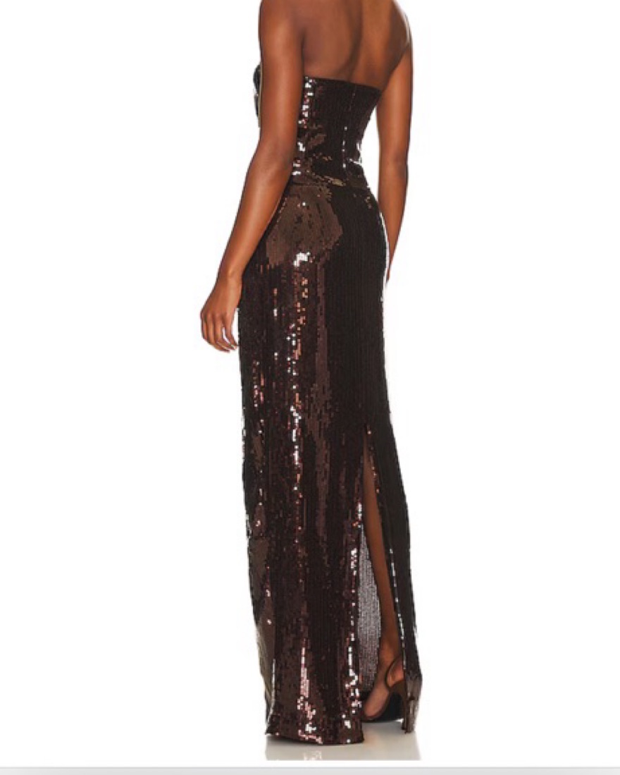 Brown gown perfect for black tie wedding. Fits 4/6. Please handle w care! Accessories are available to rent as well!