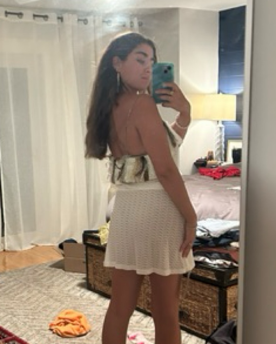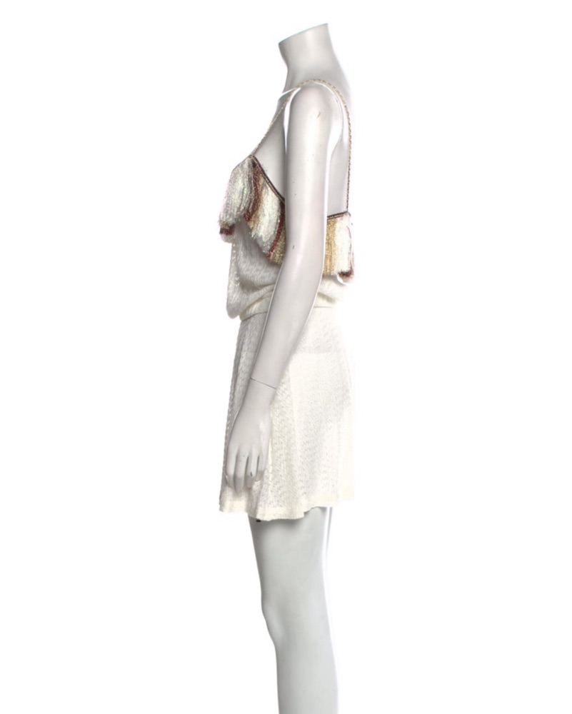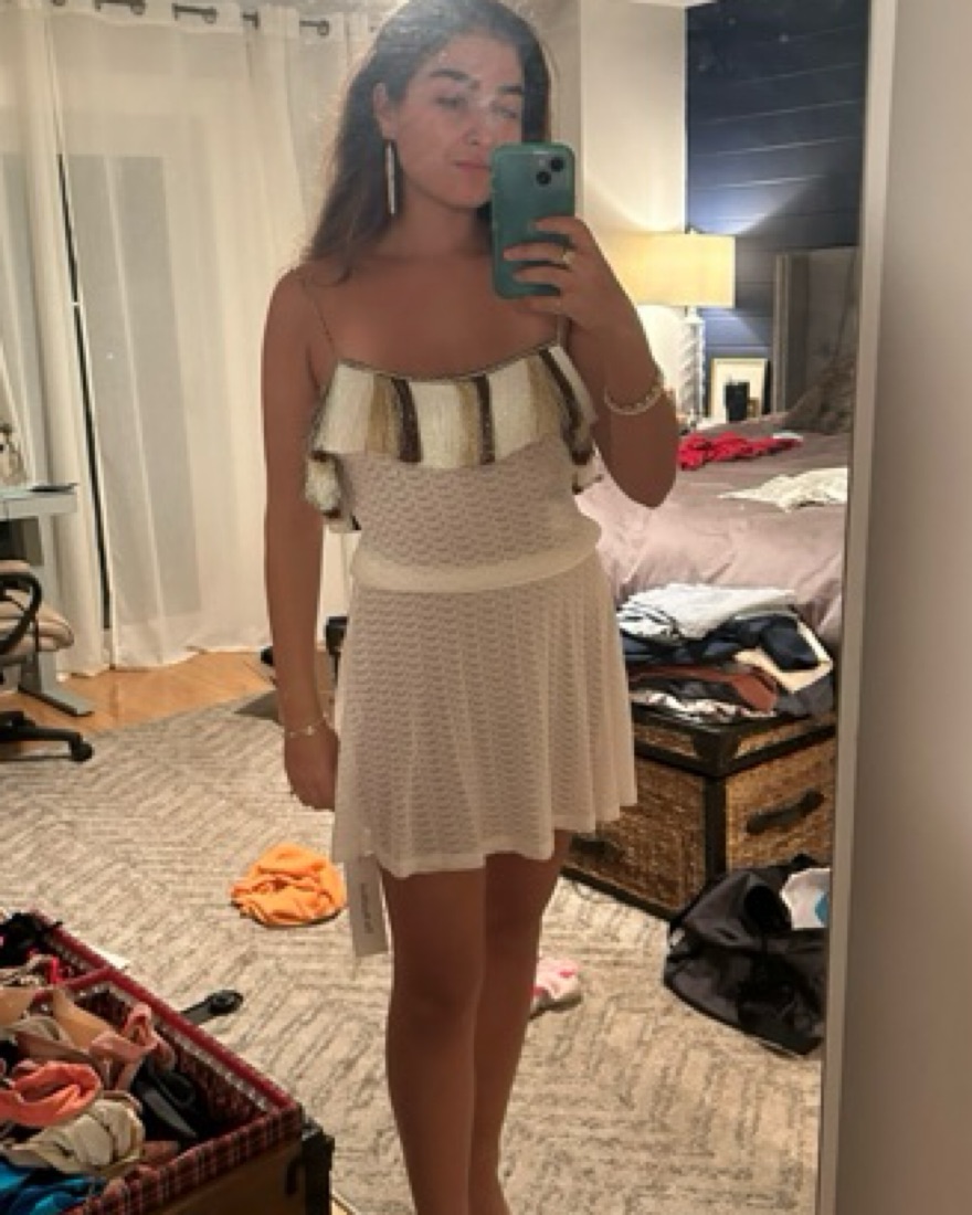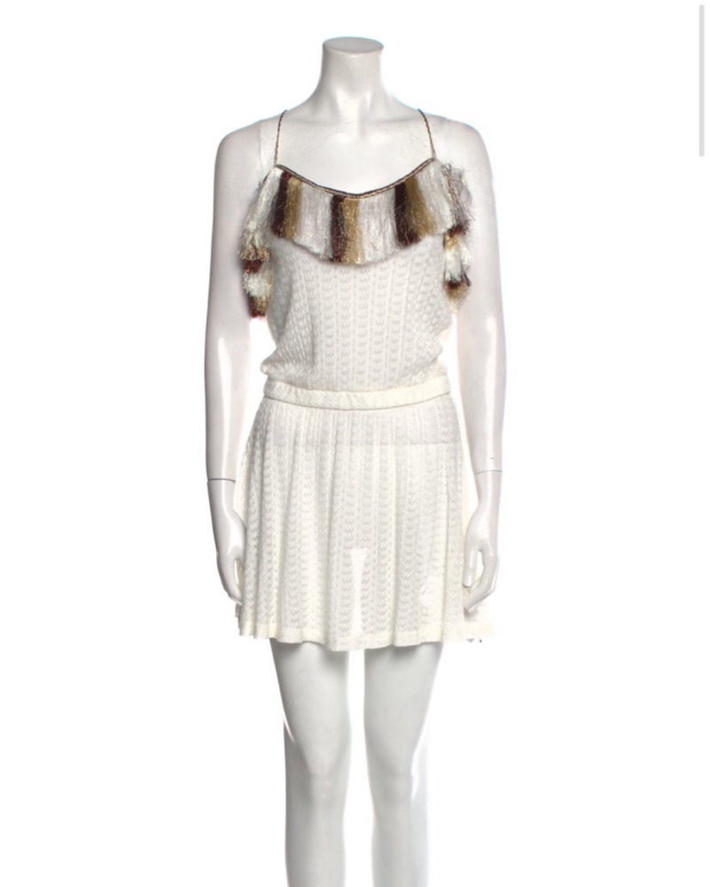 Unique, fringed, knit, white dress. Perfect for a bachelorette!