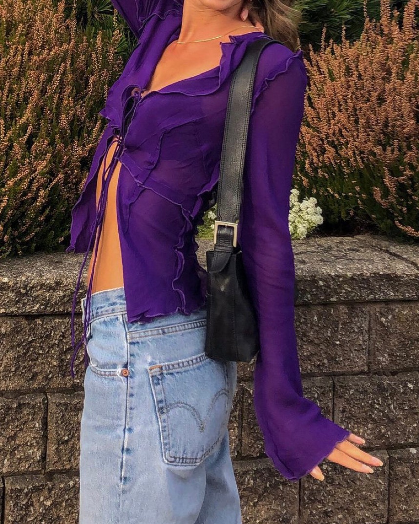 The top that went viral everywhere! Soft and delicate fabric perfect over a bikini on vacation or with jeans in the city. Size 0, fits XXS, XS, and S. Tags: rat and boa set, beach, vacation, retrofete, house of CB, miaou, asta resort, purple top, disco