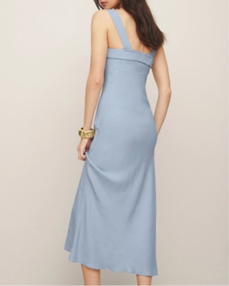 This stylish one-shoulder dress is perfect for a special occasion. The flattering midi length and sleek silhouette make it a sophisticated choice.