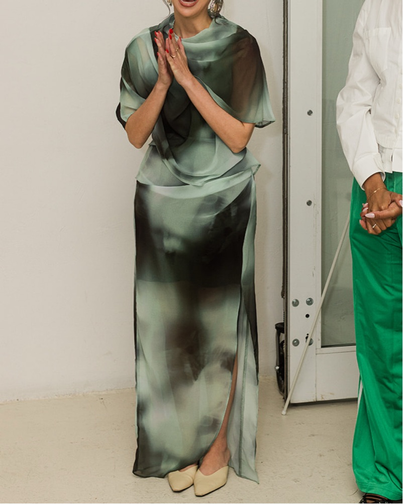 Green drape Maxi dress