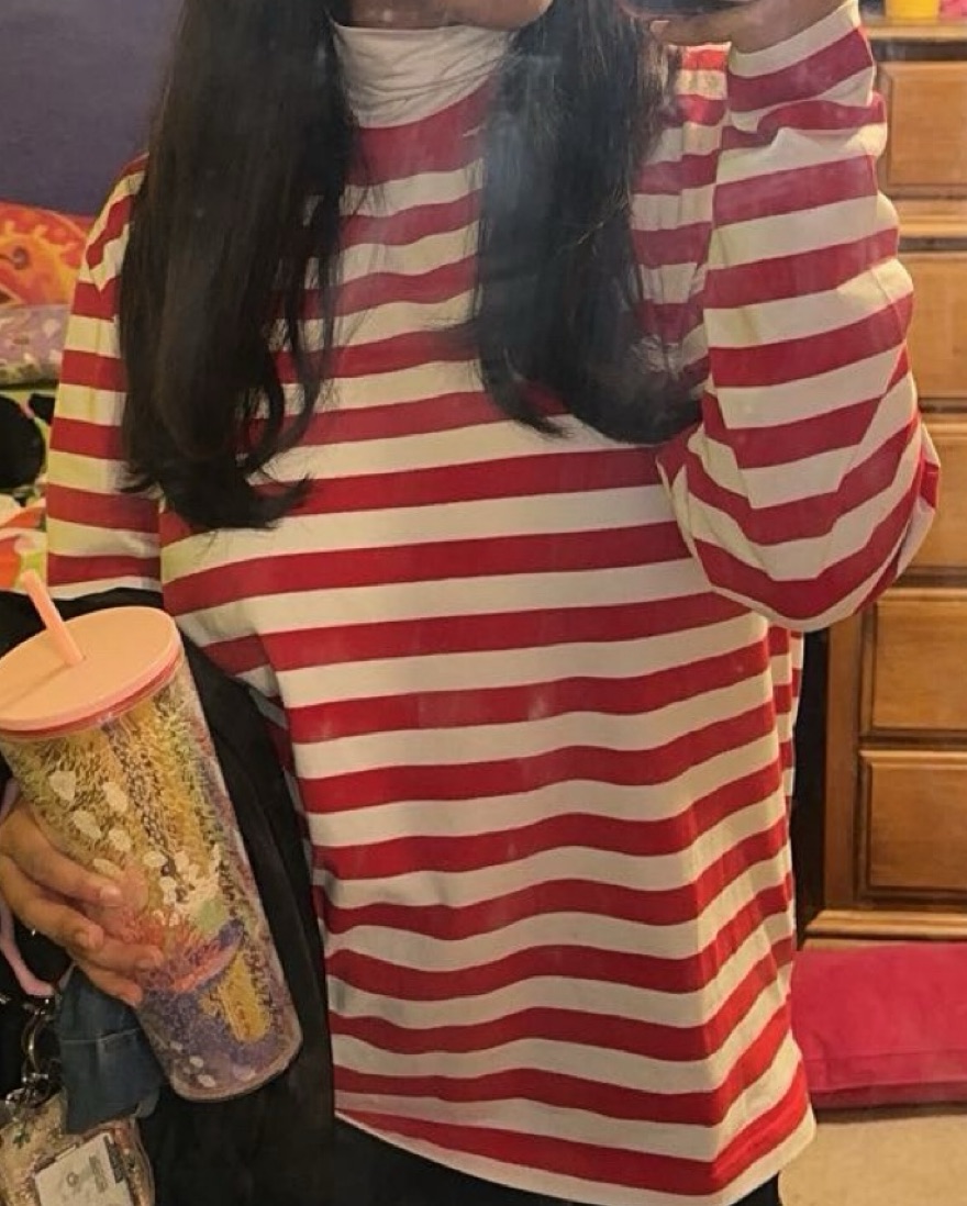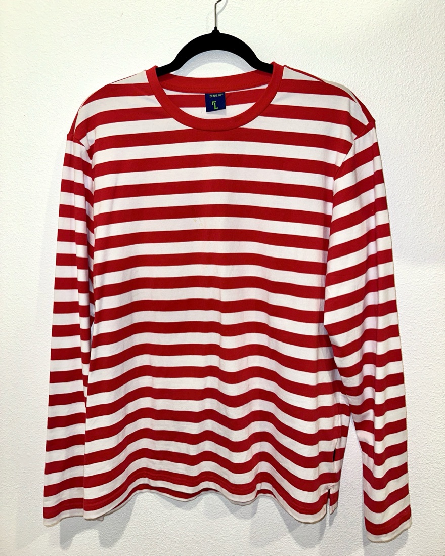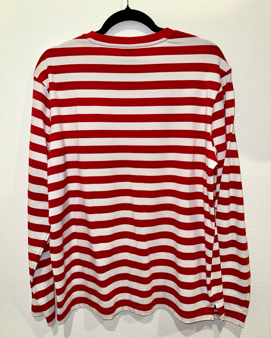 Perfect for a Where’s Waldo? costume! This long sleeve is a size L for oversized and comfort. Can ship within 24hrs.