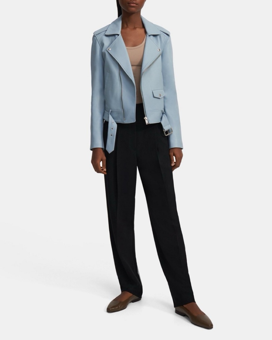Theory Blue Leather Moto Jacket by Theory - Pickle