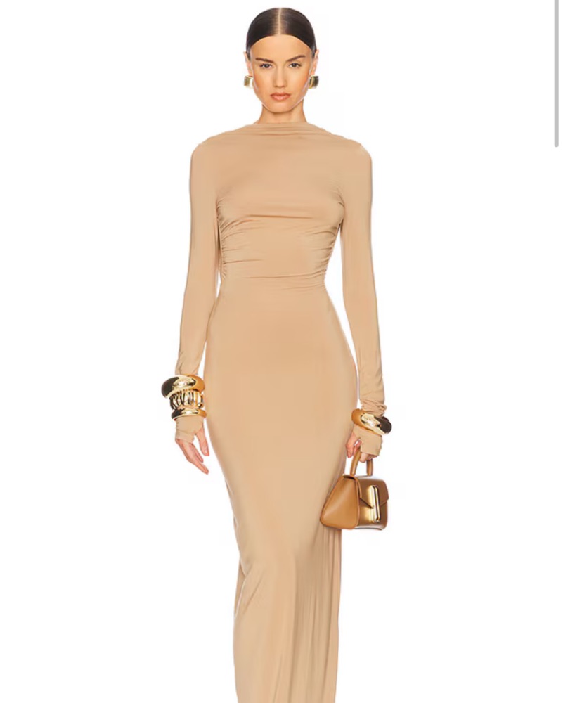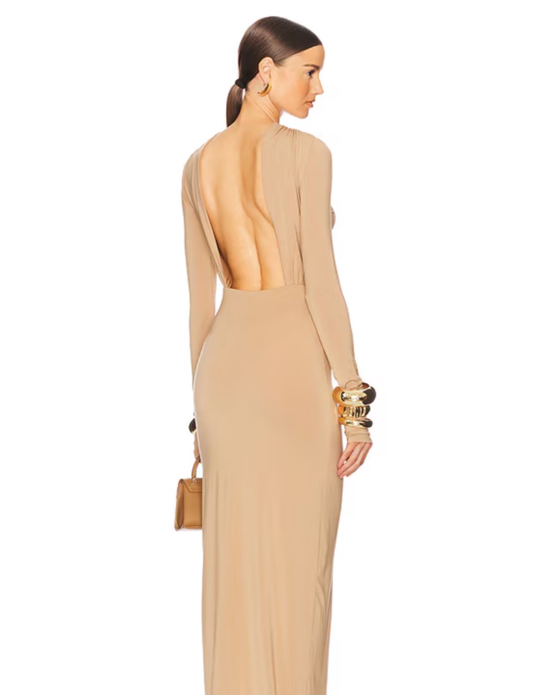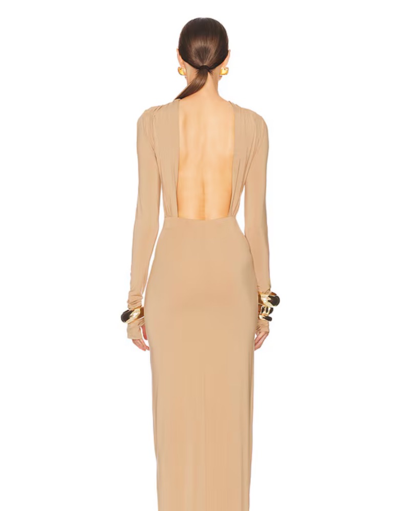 Helsa Jersey Backless Maxi Dress Nude