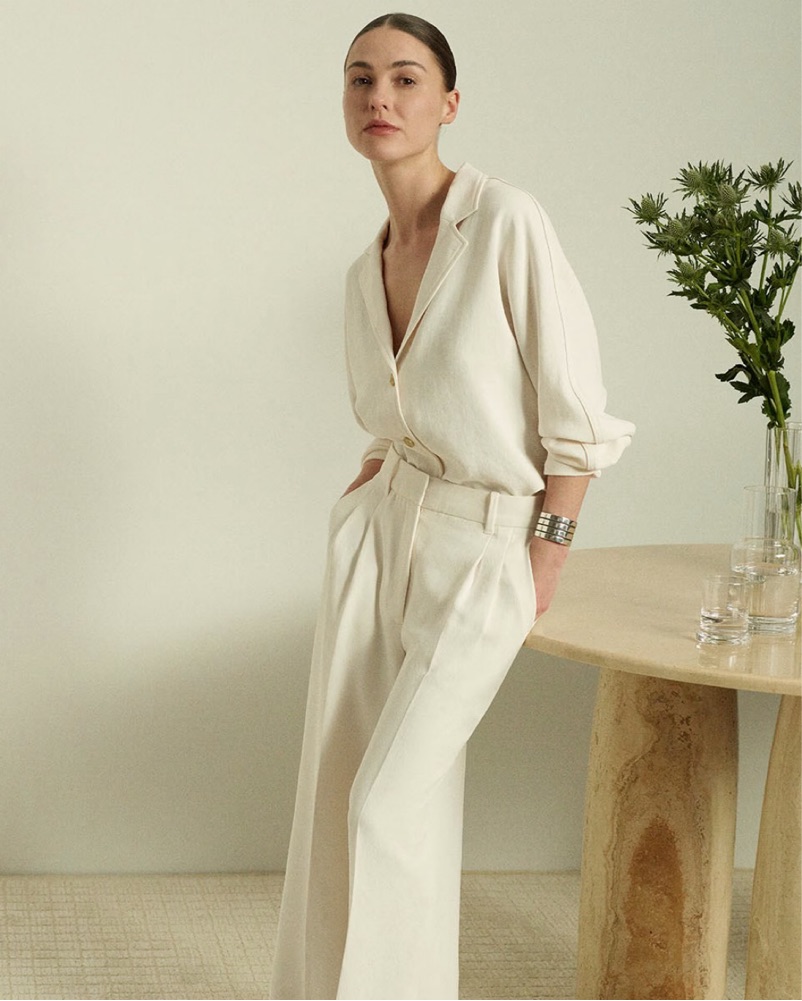 White Aritzia Effortless Pants in great condition. Super flattering, high-waisted fit with a tailored, wide-leg silhouette. Easy to dress up for work or dinner or keep casual with a tee and sneakers. A must-have staple that goes with everything.