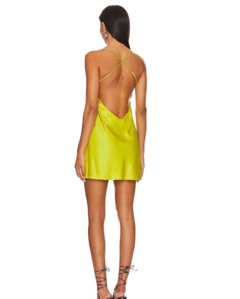 SER.O.YA Clever Silk Mini Dress from Reformation (Greenish/Yellow) *PLZ DRY CLEAN IF STAINED