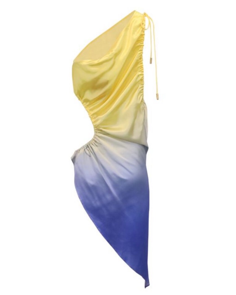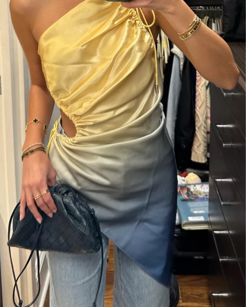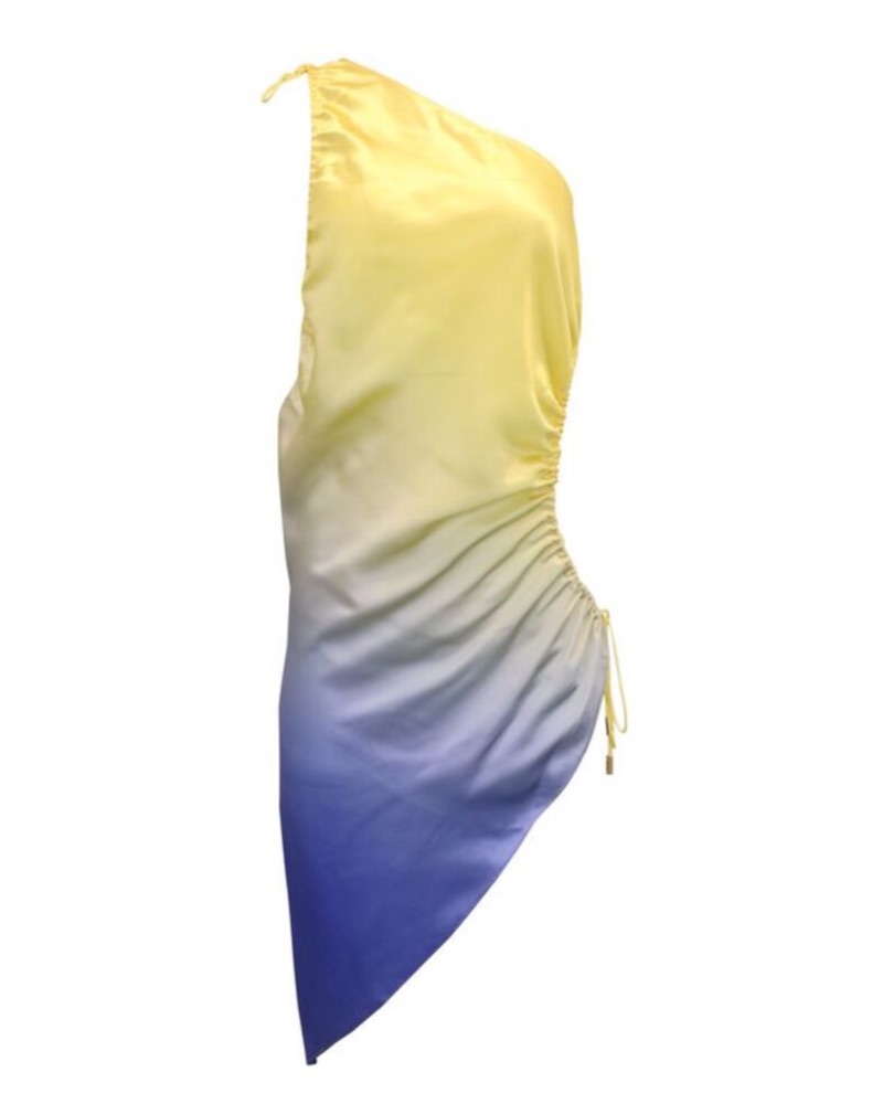 Cult Gaia yellow and blue ombré top. Chtout at the side, but the strings are adjustable so you can make the cut out as big or as small as you want.