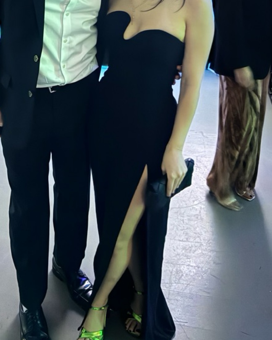 Perfect for black tie wedding! Very comfortable and didn’t have any issues with it falling down. Worn once. I’m 5’1 and pinned the bottom of the dress. Can remove pins if requested :)