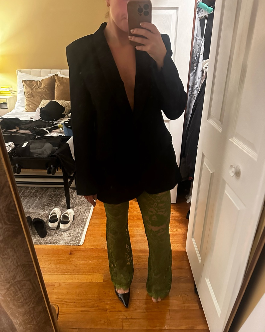 Green lace pants - has a small rip at the end of pant leg but can’t tell as it looks like it’s part of the pants. Built in green underwear