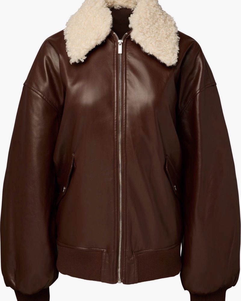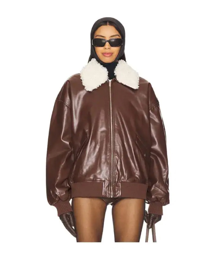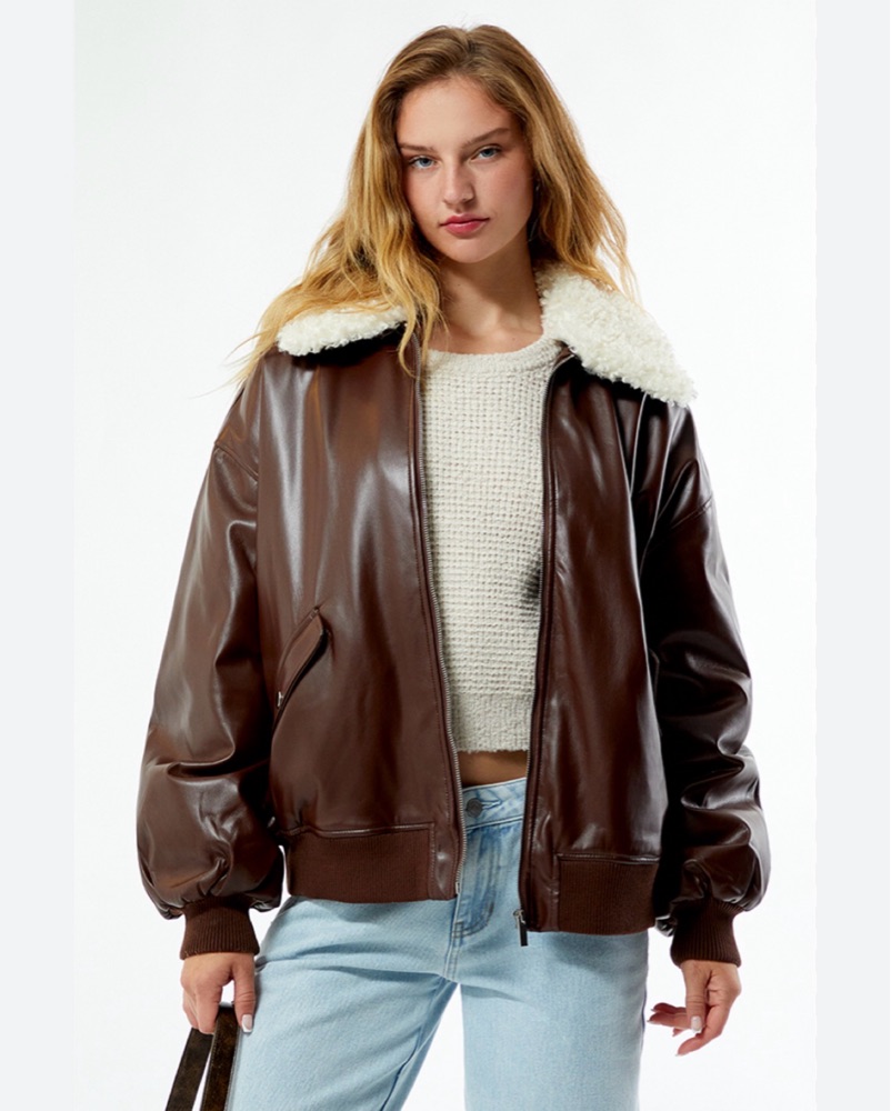 Brown Faux Leather Sherpa Collar Jacket by We wore what - Pickle