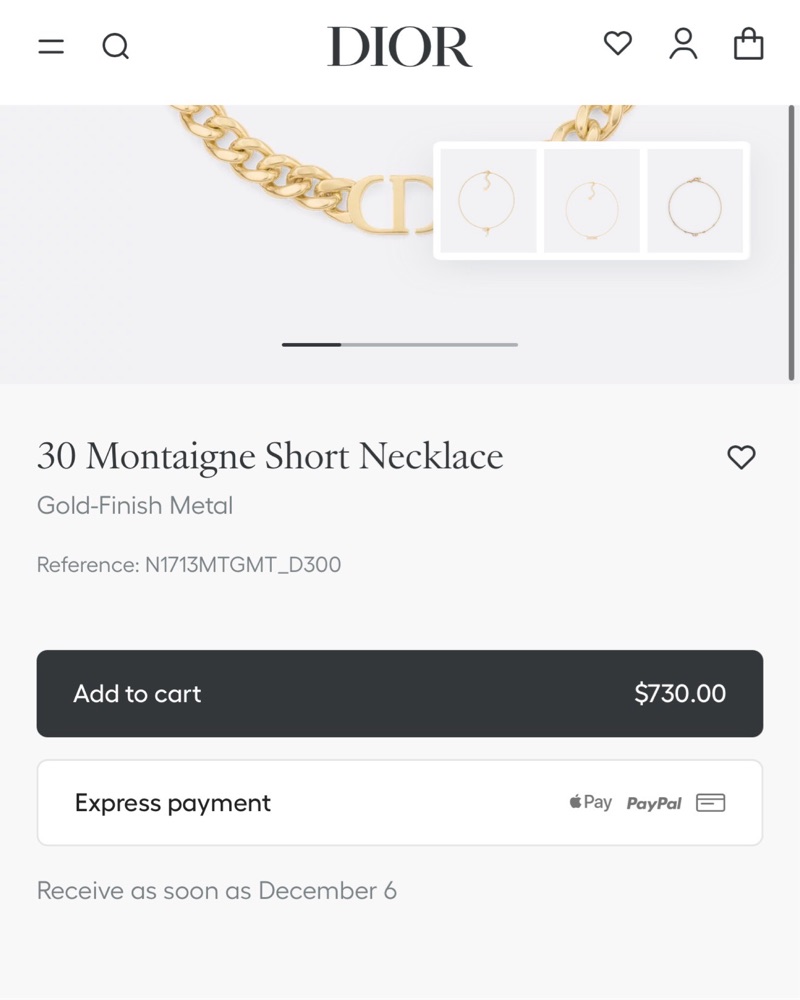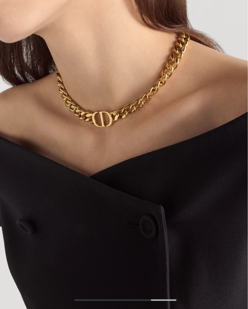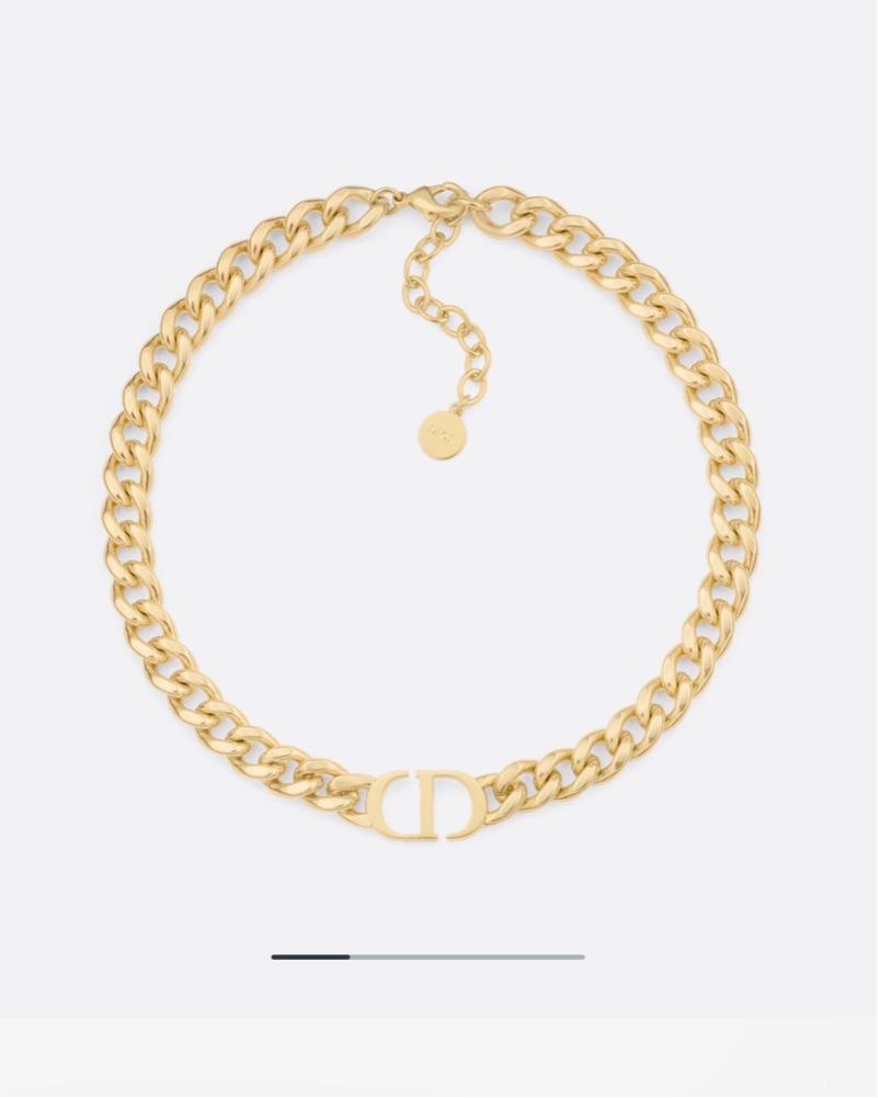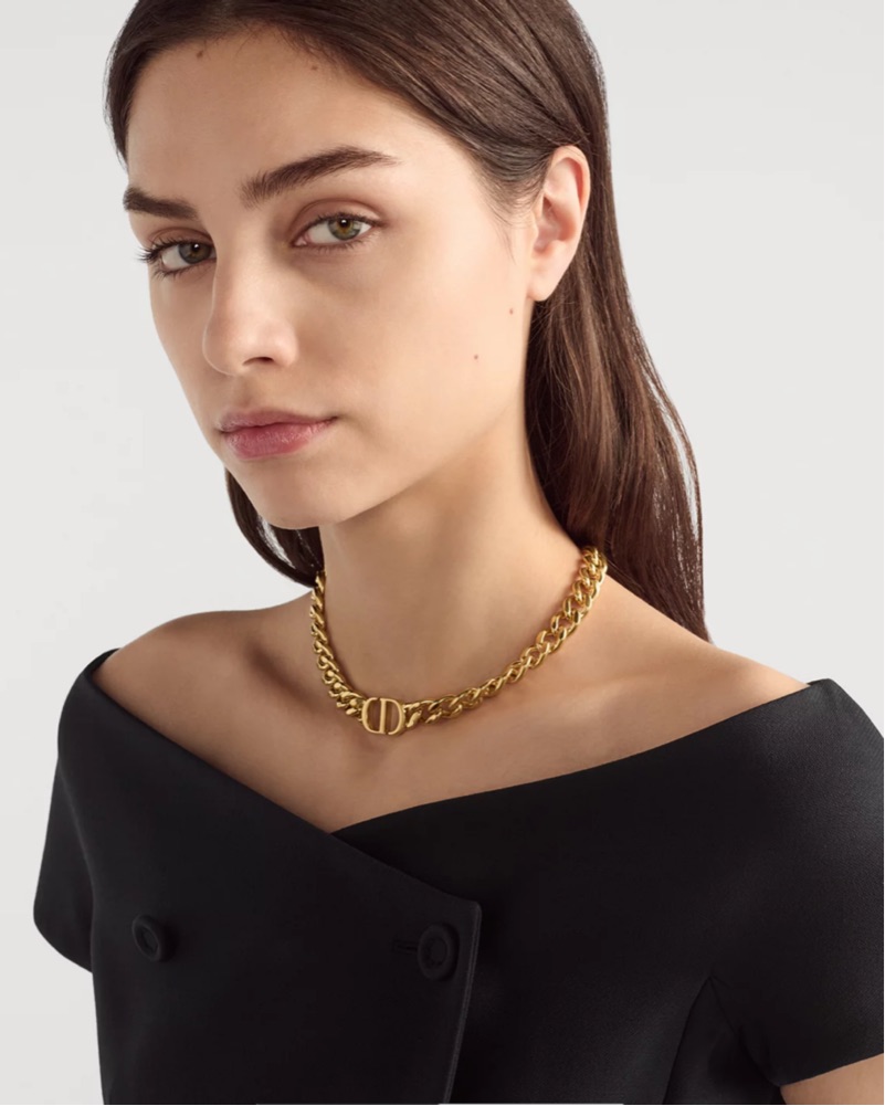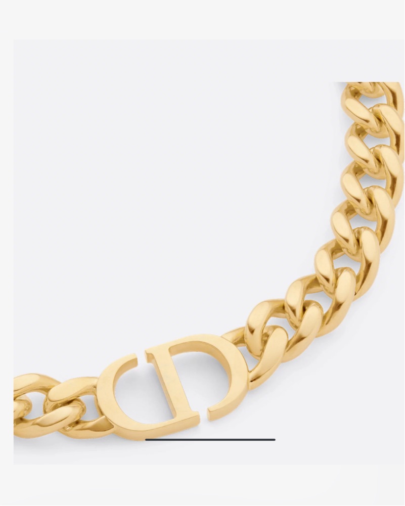 The 30 Montaigne short necklace is both modern and timeless. It is made with a shiny gold-finish metal chain that showcases the CD signature. The necklace can be worn with other 30 Montaigne creations.