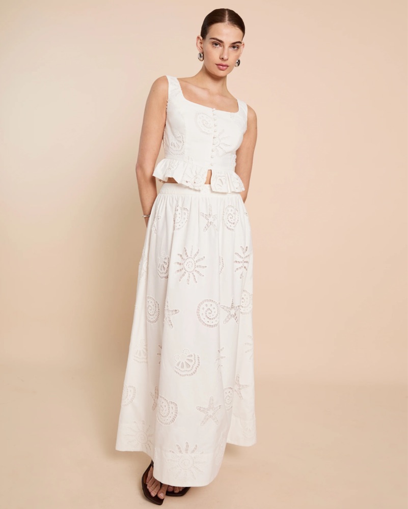 Fits 4/6 best, such an elegant set! Dry cleaning included in price.