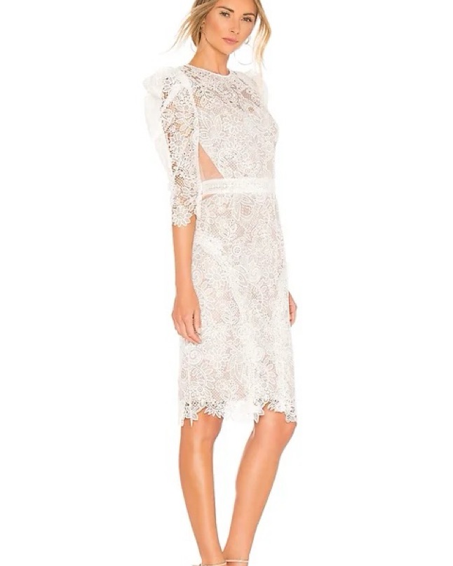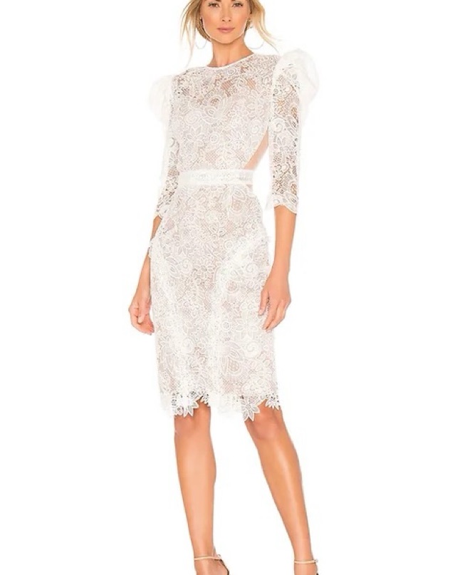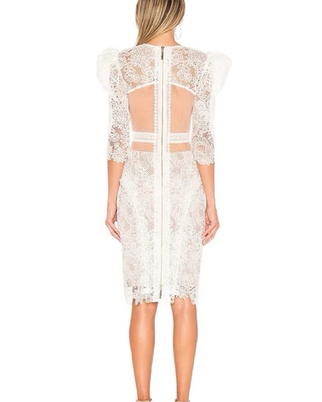 Allover embroidered lace and back cutouts add romantic allure to this captivating Bronx and Banco sheath dress that's calling all brides to be.