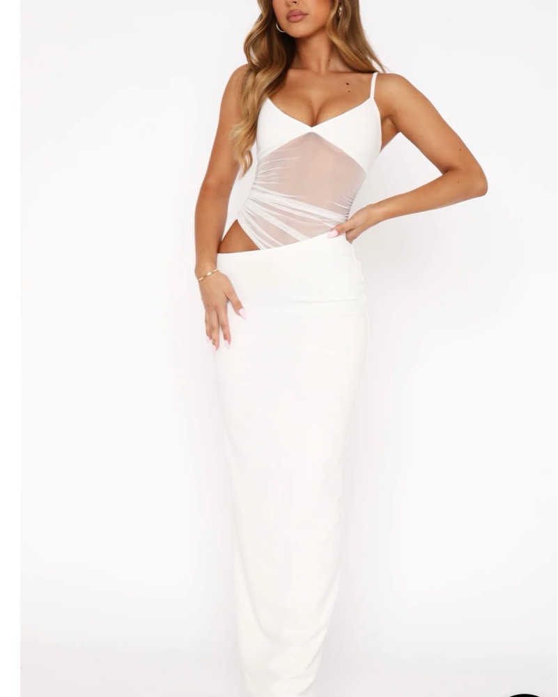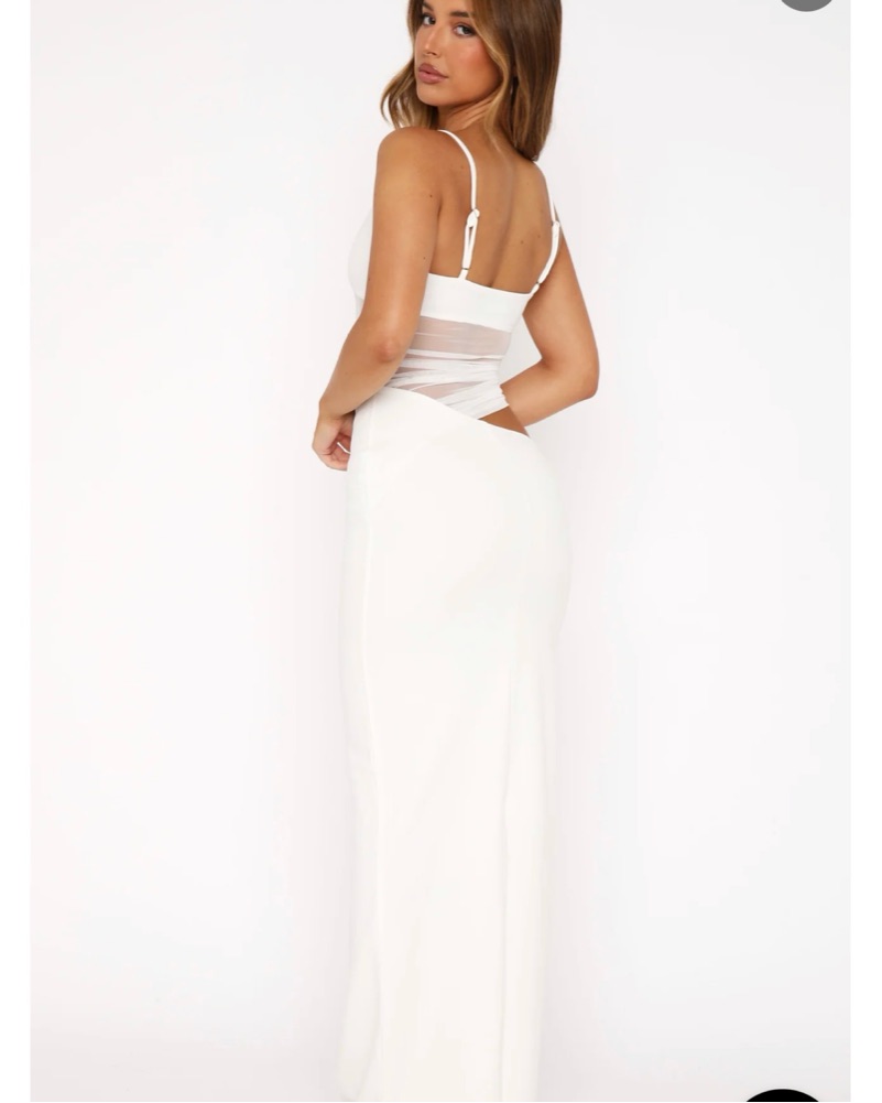 White maxi dress with cut outs and mesh overlay. Ordered for wedding events and never ended up wearing so it’s in perfect condition.