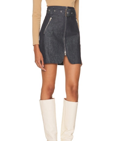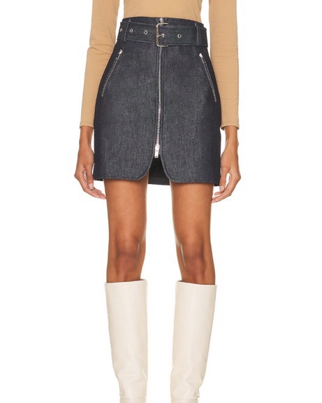 Super cool denim skirt with belt from Khaite, fits snug/true to size, shade of dark denim as pictured