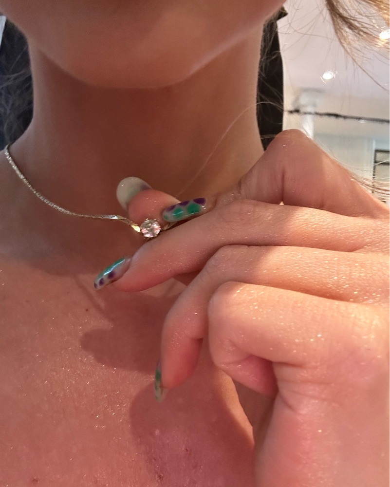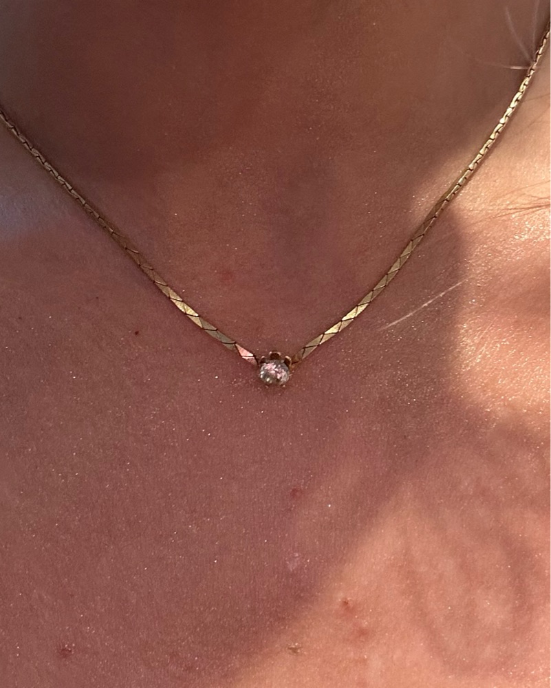 gold necklace with anchored gem, adjustable length
