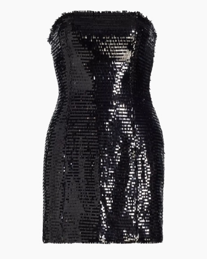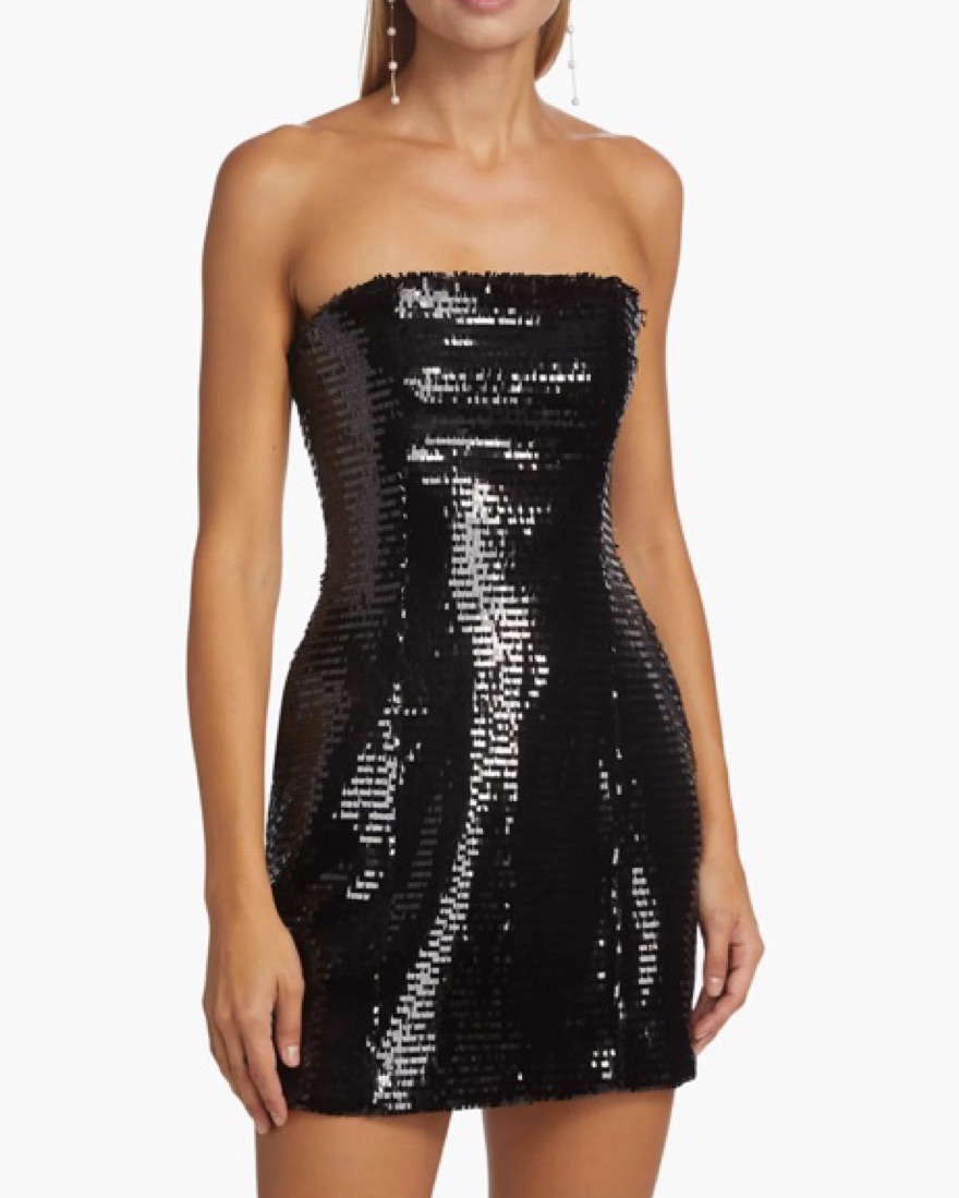 The perfect black mini dress! Great for any event. Only worn once! The Elsie Dress is crafted of baguette sequins in timeless black. This softly sculpted mini silhouette features a strapless neckline with bone corsetry. Darted seams enhance the feminine fit as pockets complete the look.
