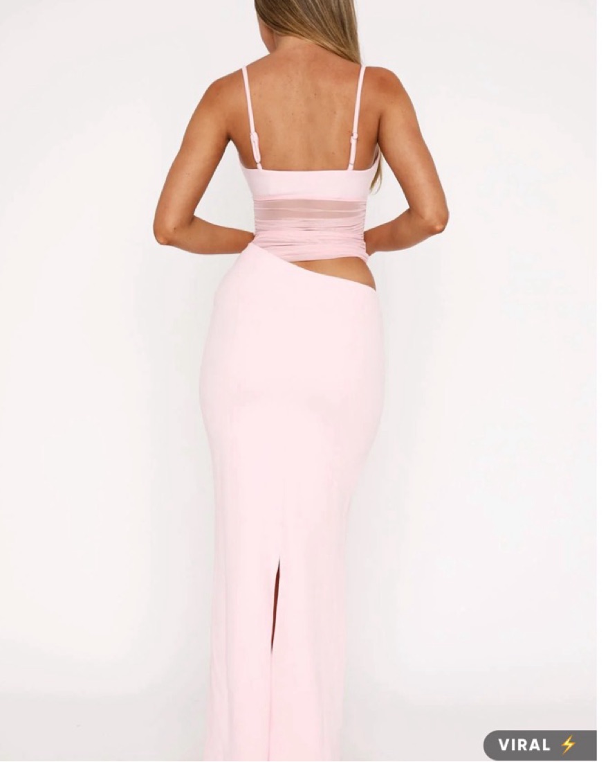 Create a jaw dropping entrance in the Call Me Up Maxi Baby Pink. Features thin adjustable straps, lined bust cups, mesh bodice design, maxi length and side cut out detailing