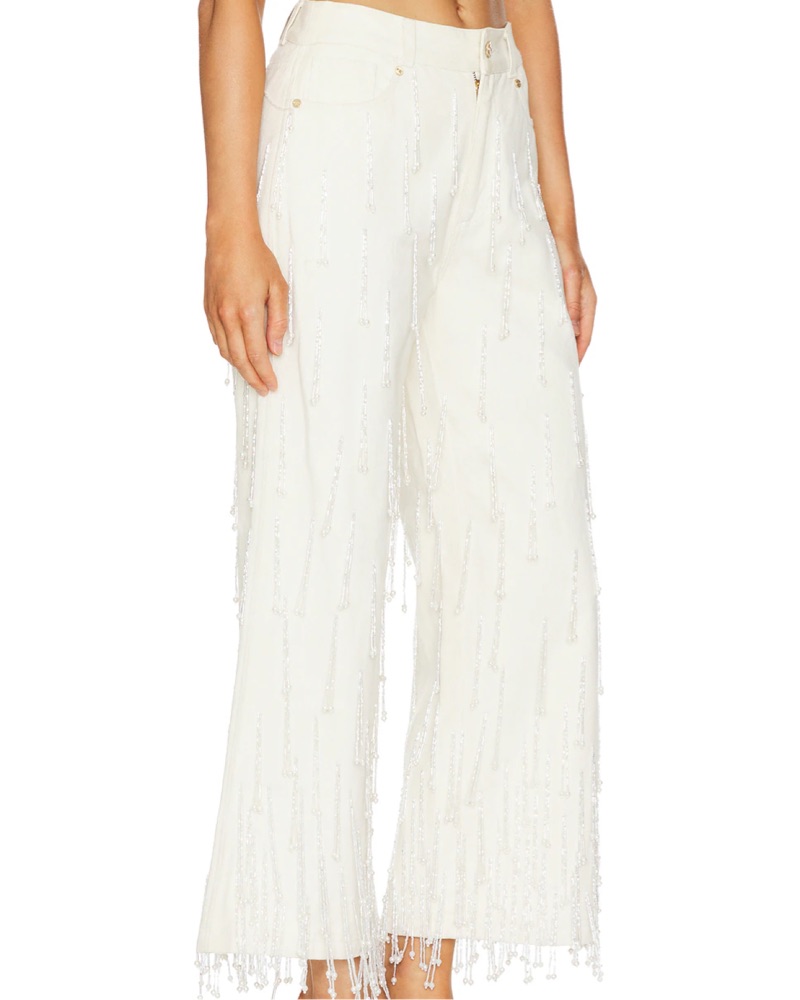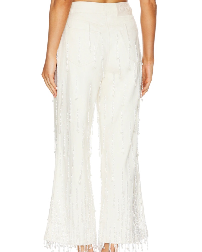 Amazing Cult Gaia Jeans make a statement for any occasion! Beaded fringe with pearl accents. Size 29. Retails for $998!
