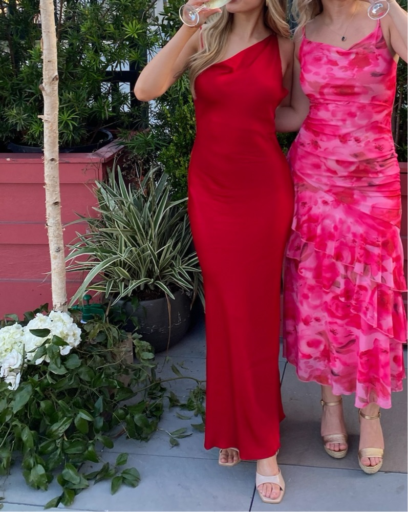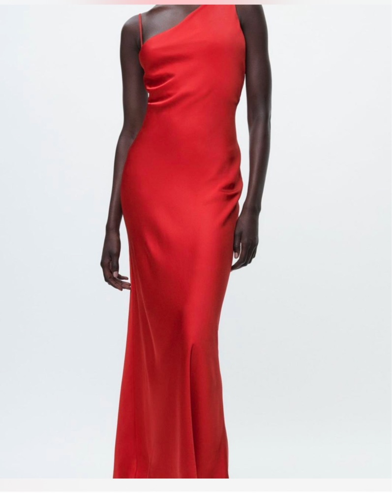 Red Zara Satin Maxi Dress by Zara - Pickle