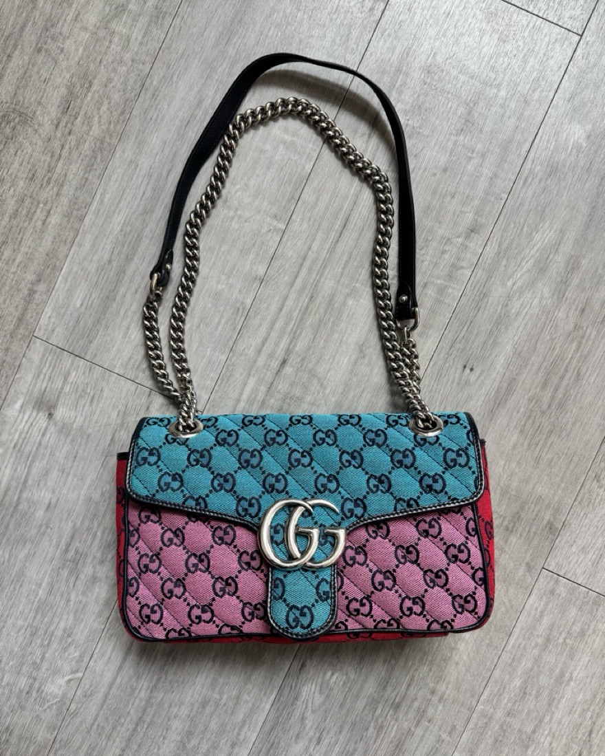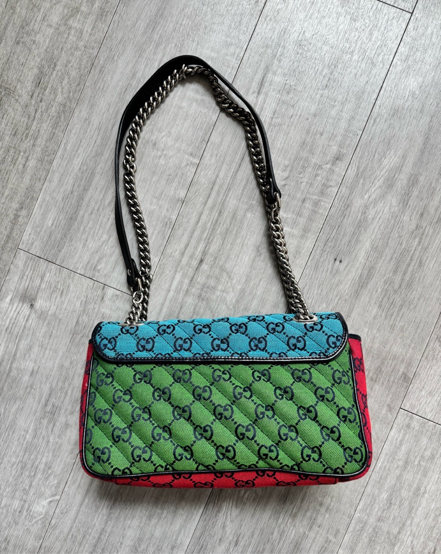 GUCCI GG Marmont Chain Shoulder Bag. Color: Multi-Color(Red,Blue,Pink,Green). SIZE ( inch ) W 9.4 x H 5.9 x D 2.8 " (approx.).
